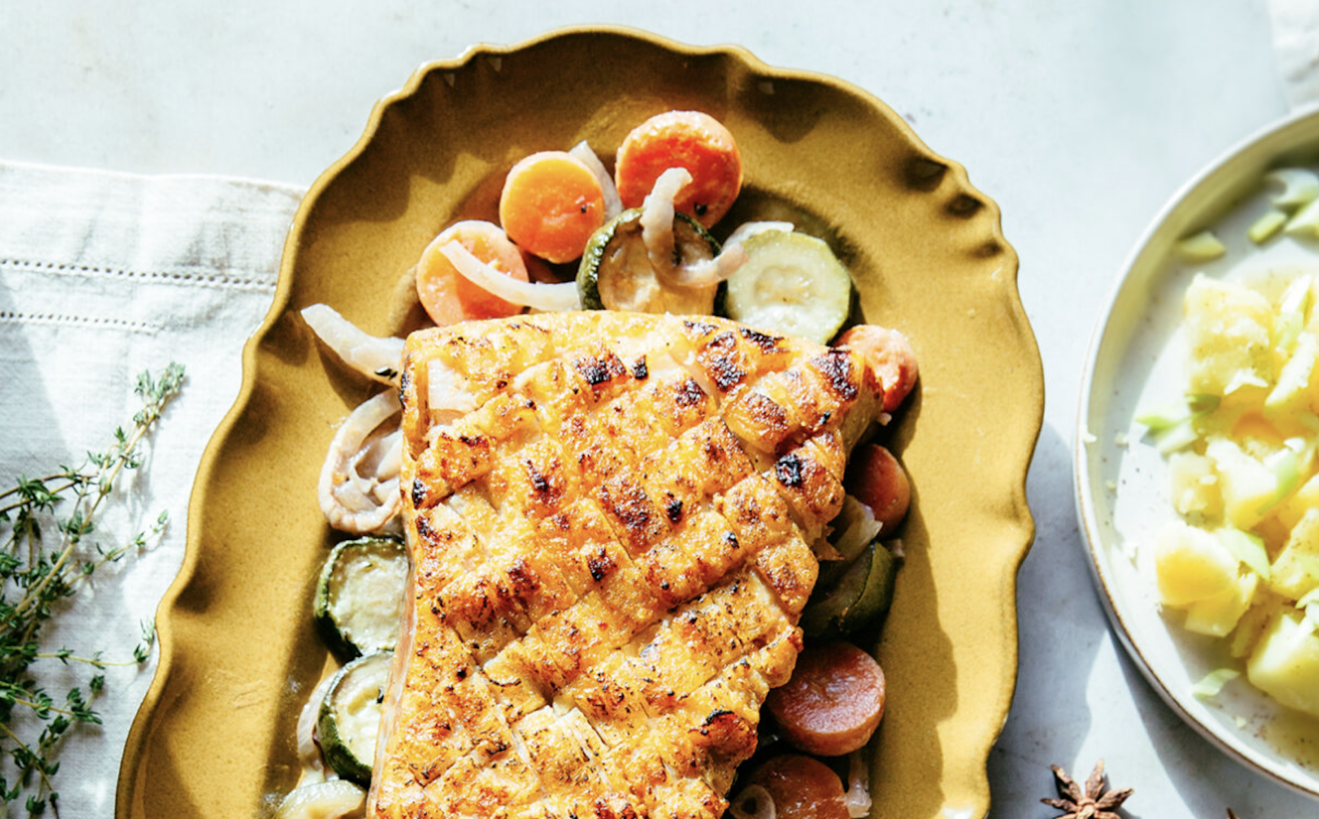 Βάζουμε όλα τα υλικά σε ένα ταψί και το… ξεχνάμε! Η τραγανή πανσέτα με λαχανικά στο φούρνο είναι το κυριακάτικο φαγητό που μας λύνει τα χέρια.