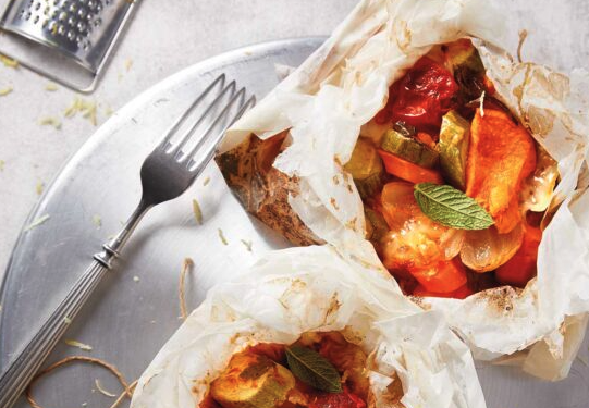 - Ξεφουρνίζουμε, ανοίγουμε προσεκτικά τη λαδόκολλα για να μην καούμε, σκορπίζουμε το ξύσμα και σερβίρουμε.