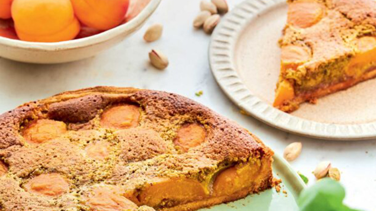 - Ξεφουρνίζουμε και την αφήνουμε λίγο να κρυώσει. Απλώνουμε ομοιόμορφα τη μαρμελάδα βερίκοκο και από πάνω την κρέμα φυστικιού.