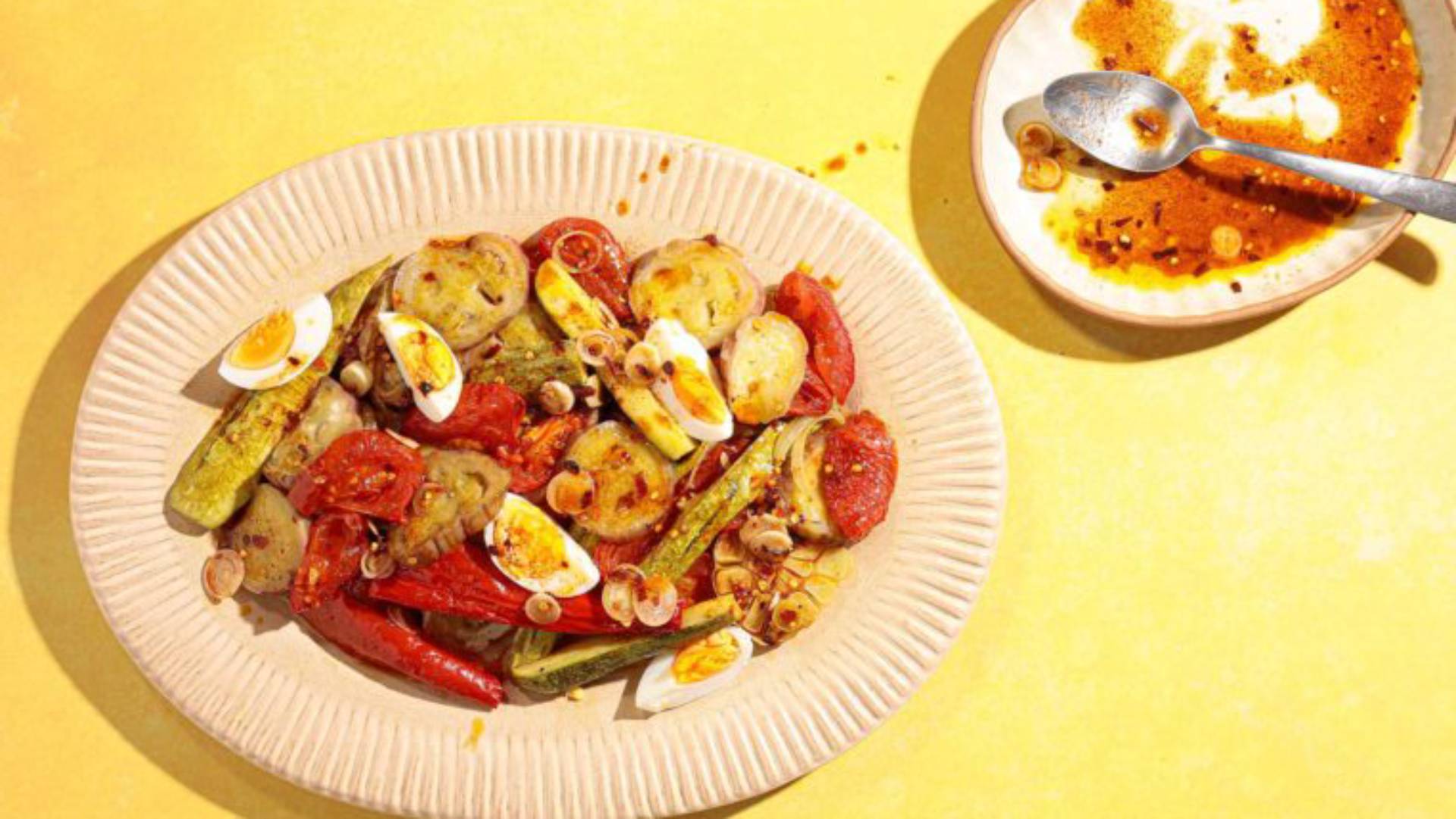 Ενα απλό, νόστιμο και θρεπτικό φαγητό με ψητά λαχανικά, βραστά αυγά και βινεγκρέτ. Ιδανικό για το ταπεράκι της δουλειάς!