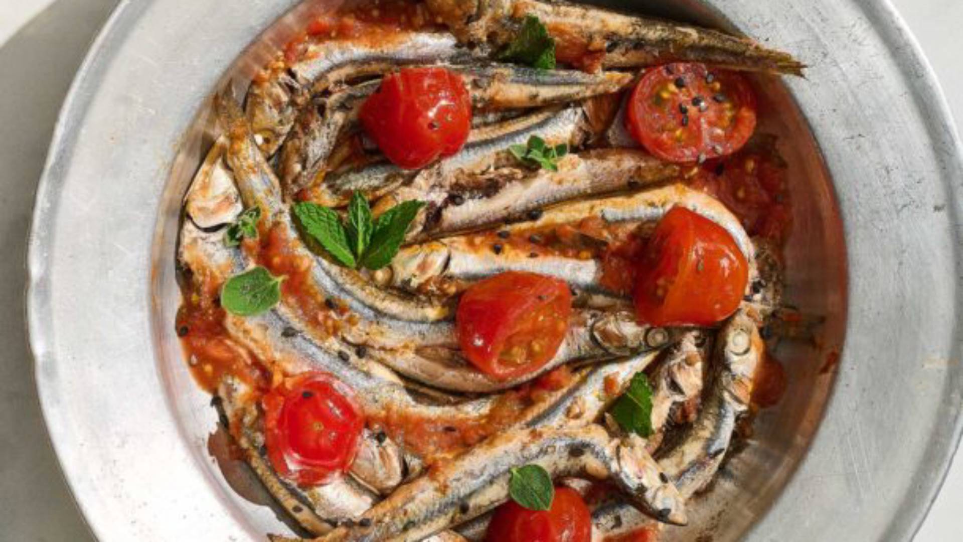 - Ξεσκεπάζουμε και απλώνουμε στο τηγάνι τον γαύρο σε μονή στρώση.