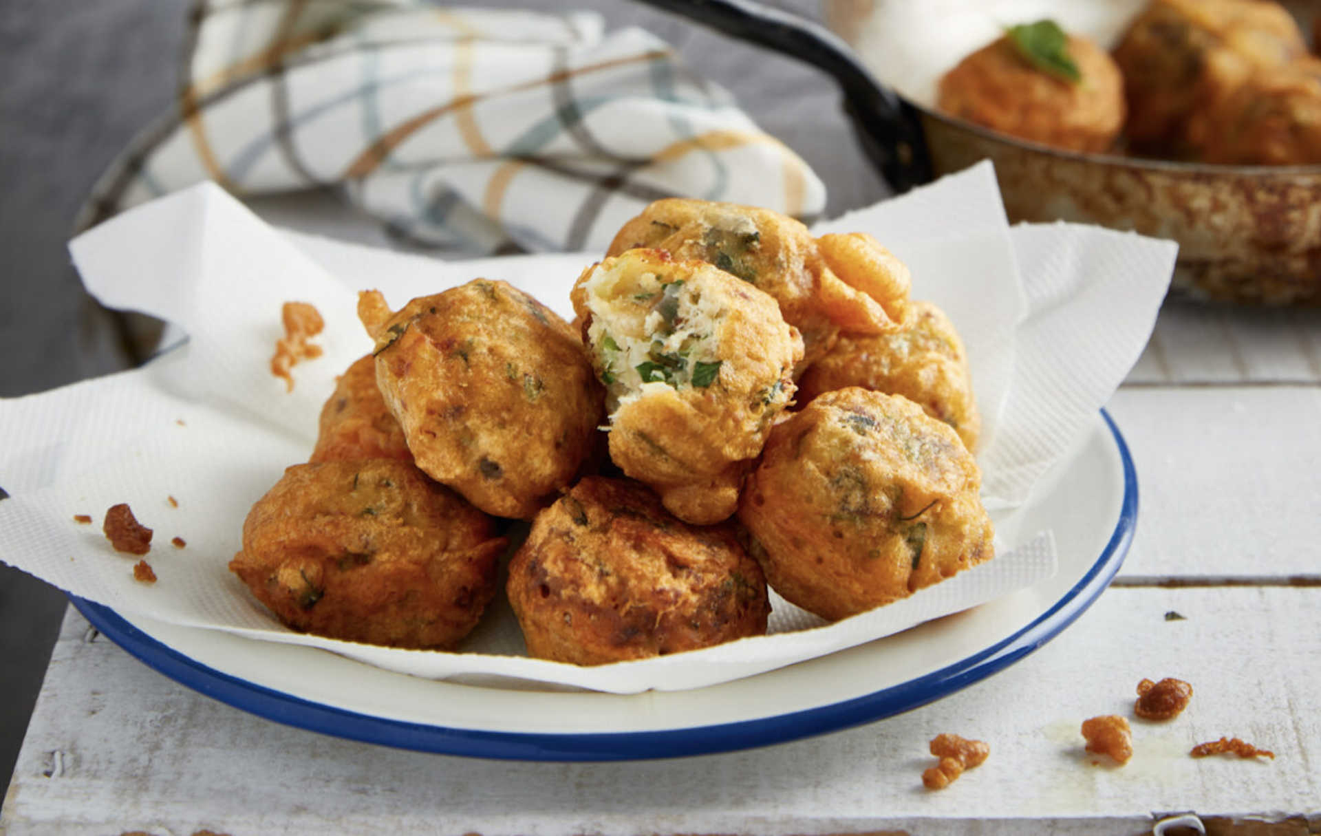 Τι απίθανος μεζές! Κεφτεδάκια από παστό μπακαλιάρο με μυρωδικά και ξύσμα λεμονιού, παναρισμένα σε πικάντικο κουρκούτι. Δοκιμάστε τα!