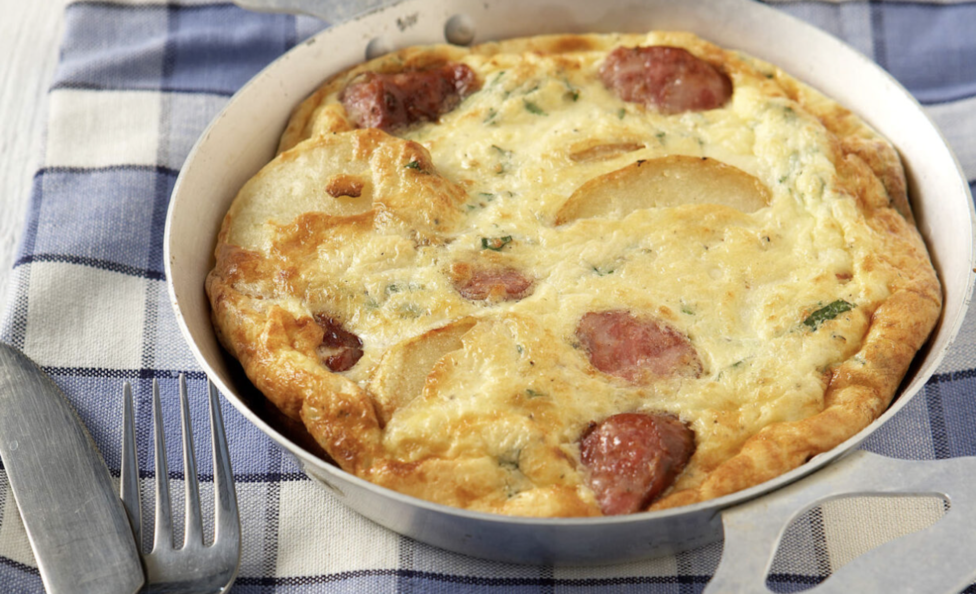 Χορταστική και πλούσια, η παραδοσιακή αυτή ομελέτα με λουκάνικα θα σας μείνει αξέχαστη.