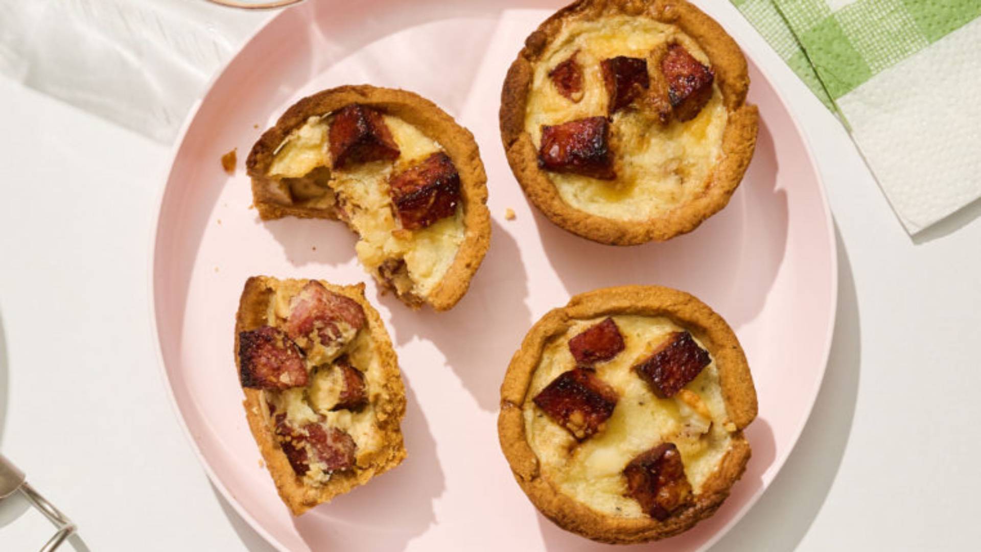 - Ψήνουμε στους 180°C για περίπου 20 λεπτά, μέχρι να σφίξει η γέμιση και να ροδίσει ωραία στην επιφάνεια. Σερβίρουμε τις μίνι κις χλιαρές.
