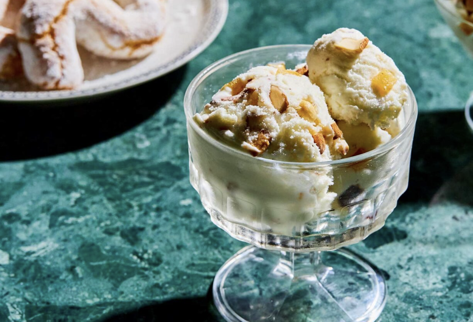 Παγωτό μαντολάτο με καβουρδισμένους ξηρούς καρπούς, και μπισκότα μάρτσιπαν. Το ιδανικό επιδόρπιο για να κλείσει ένα καλοκαιρινό γεύμα.