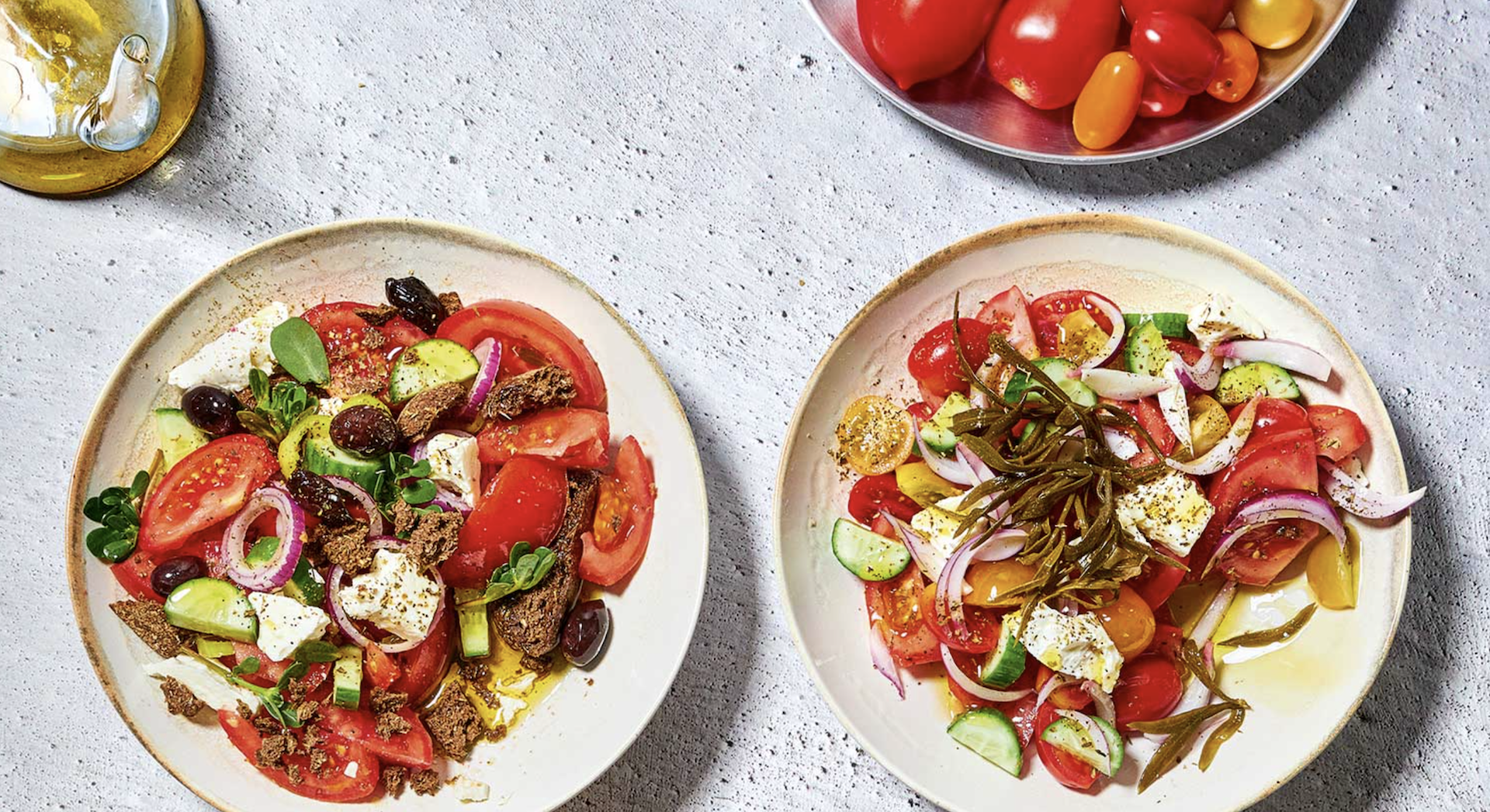 Μπορεί οι περισσότεροι να έχουμε συγκεκριμένο πράγμα στο μυαλό μας όταν μιλάμε για «χωριάτικη», όμως υπάρχουν αμέτρητες ντοπιολαλιές για την πιο διάσημη ελληνική σαλάτα. Εμείς ενδεικτικά συγκεντρώσαμε είκοσι. Τοπικές παραλλαγές παραλλαγών, με διάφορους συνδυασμούς υλικών και διαφορετικές αναλογίες, όμως με κοινό παρονομαστή την αγγουροντομάτα, το κρεμμύδι, το ελαιόλαδο.