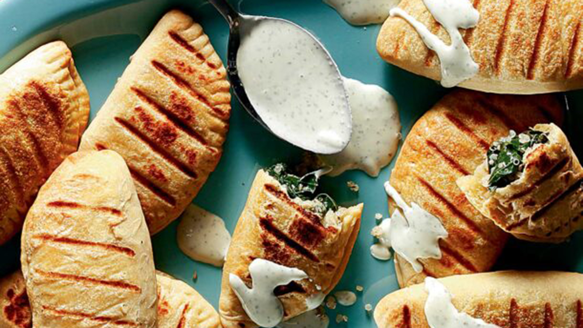 - Σερβίρουμε κάθε πιτάκι κομμένο στα δύο και σερβίρουμε με την κρέμα φέτας.