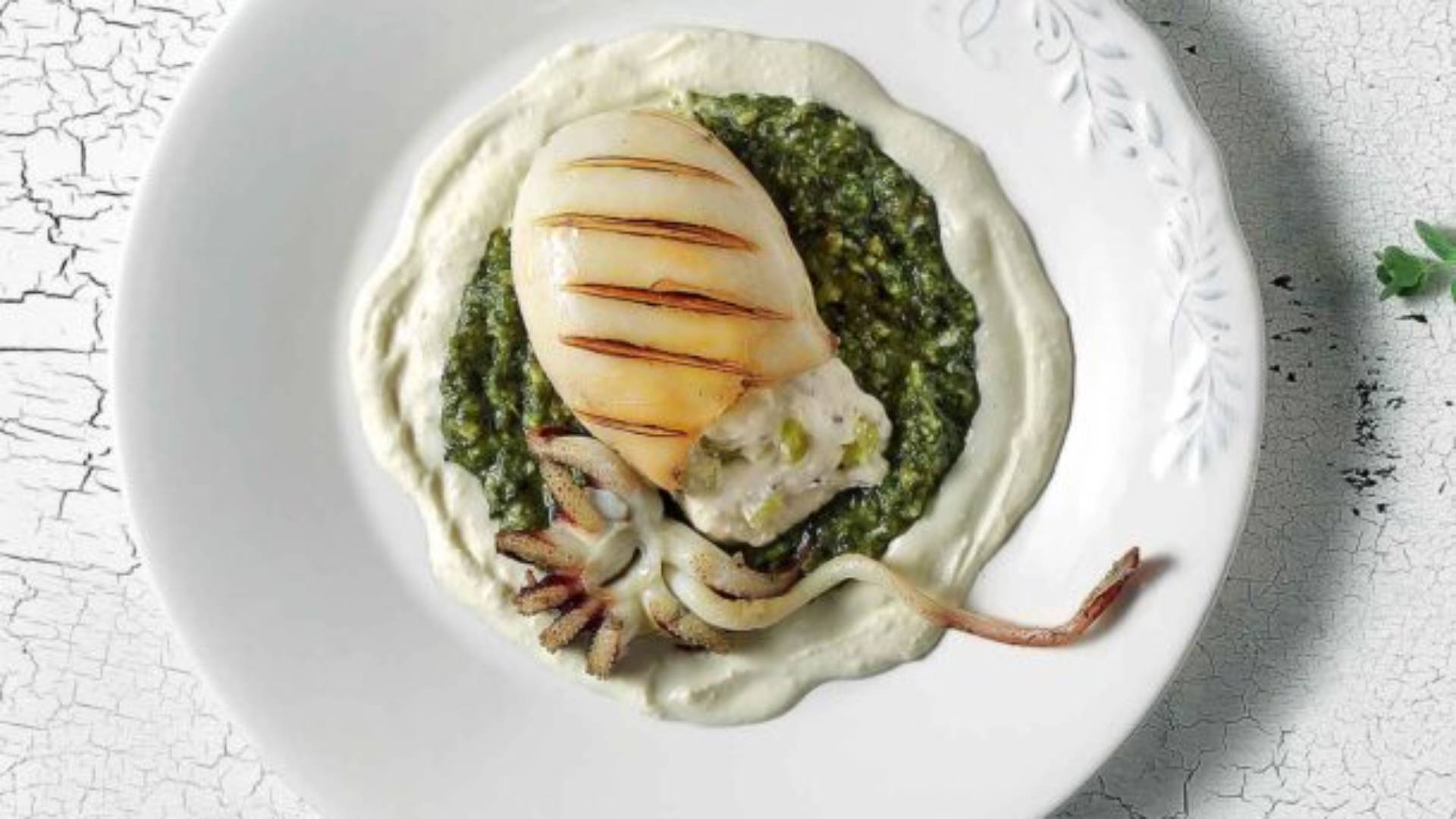 - Για να φτιάξουμε σουπιά ψητή με κρέμα φέτας και πέστο ρίγανης, ξεκινάμε με το πέστο.
