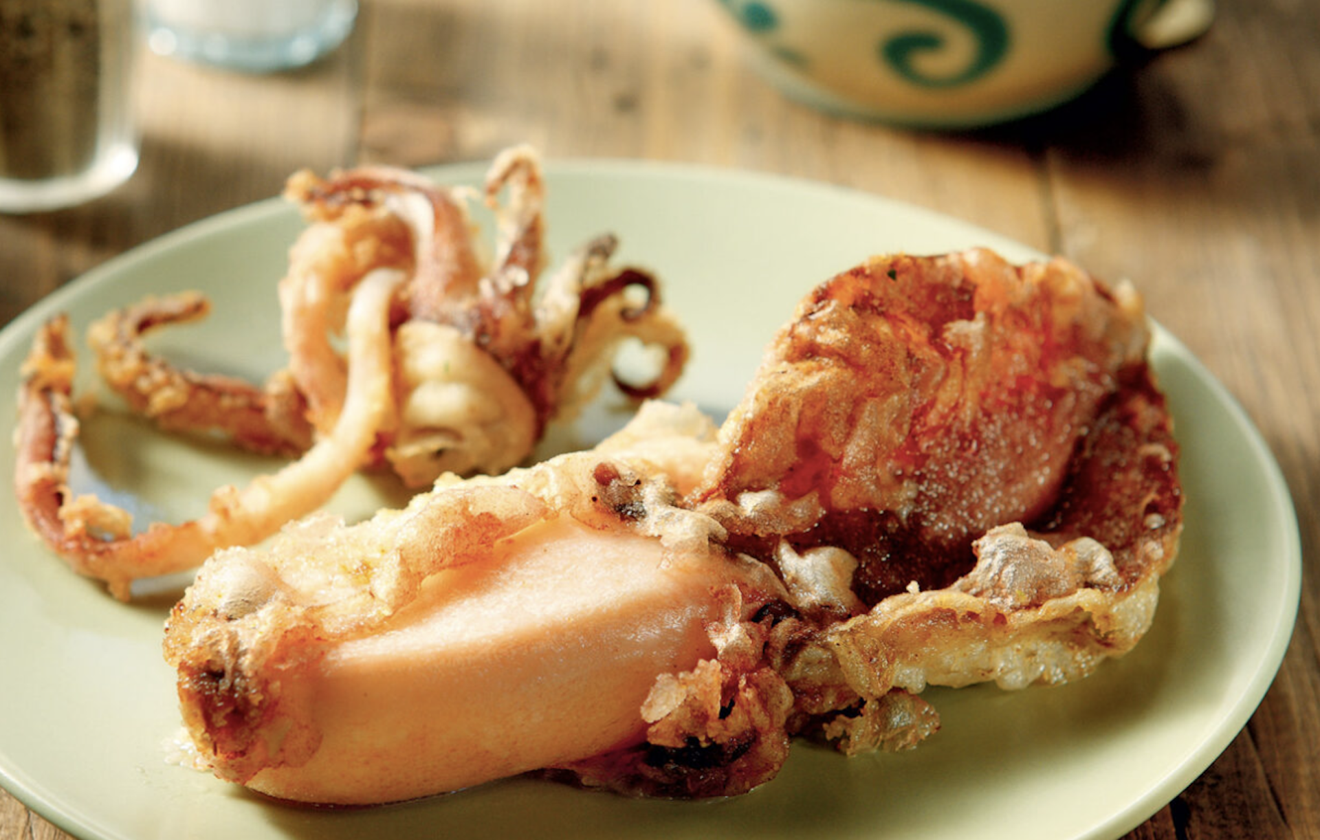 Δυνατή φωτιά, άφθονο καυτό λάδι και ελάχιστο τηγάνισμα. Αυτό είναι το μυστικό για τέλειο, κριτσανιστό καλαμάρι, με αφράτη ψίχα εσωτερικά, που θα σερβίρουμε με μια ρωμαλέα σάλτσα από ανάμεικτα γιαούρτια.