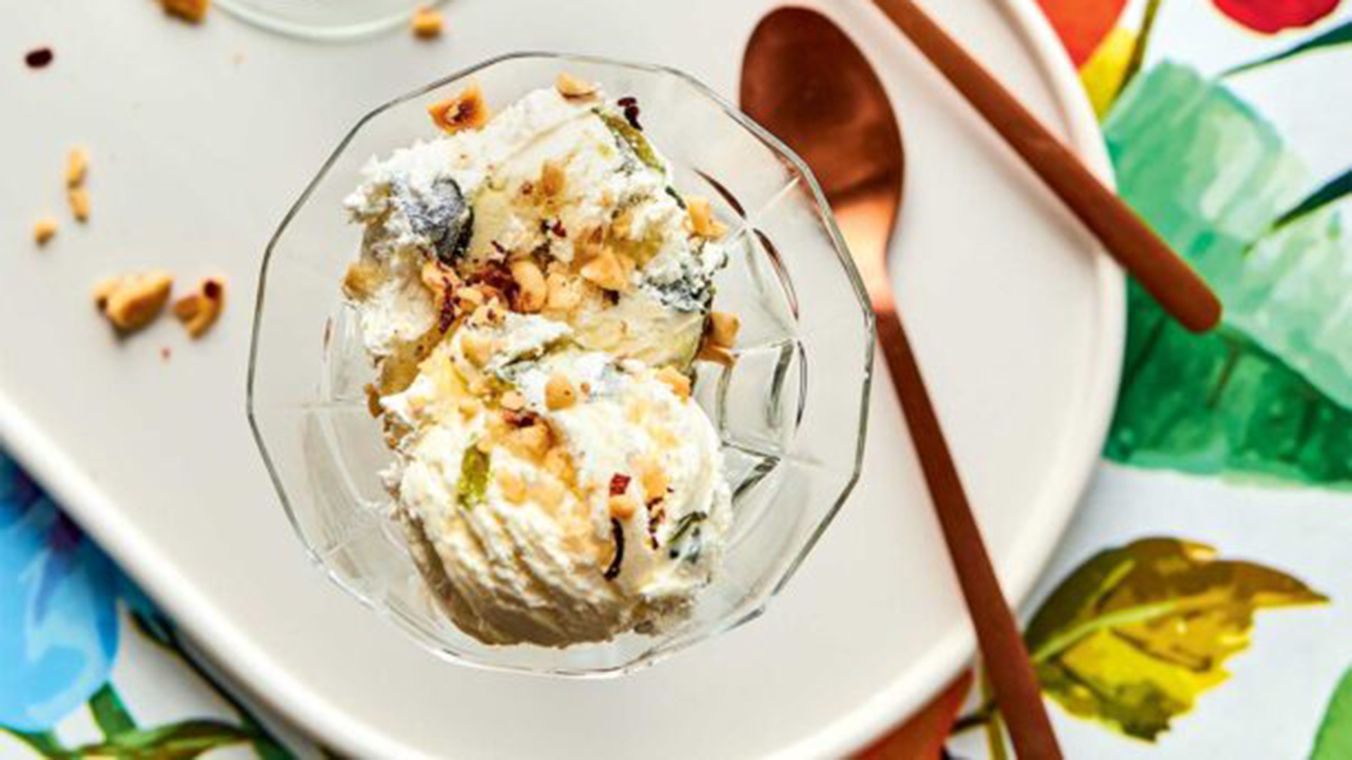 Για να σερβίρουμε, αφήνουμε το παγωτό εκτός κατάψυξης για λίγα λεπτά, να μαλακώσει.