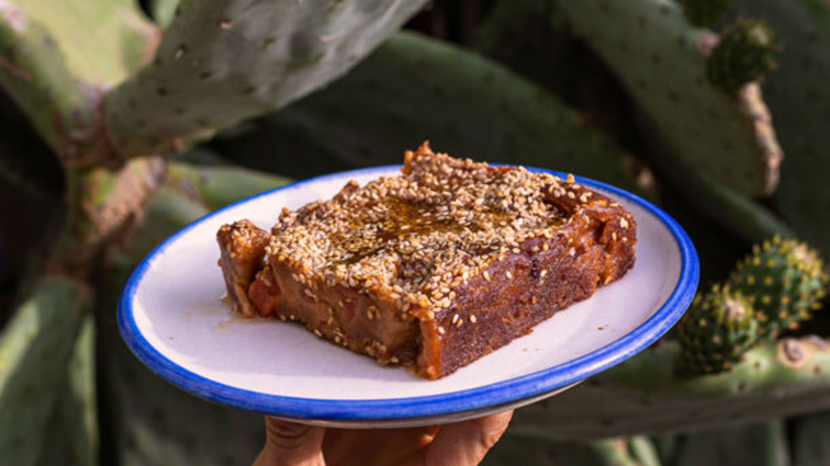 - Το αδειάζουμε αμέσως στο ταψί, στρώνουμε την επιφάνεια και πασπαλίζουμε με σουσάμι.
