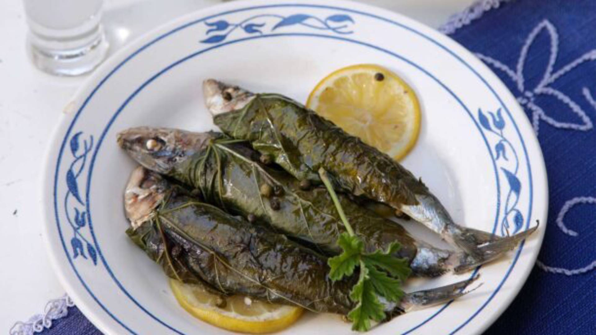 - Αλατίζουμε καλά τα ψάρια και τυλίγουμε το καθένα με μισό αμπελόφυλλο.