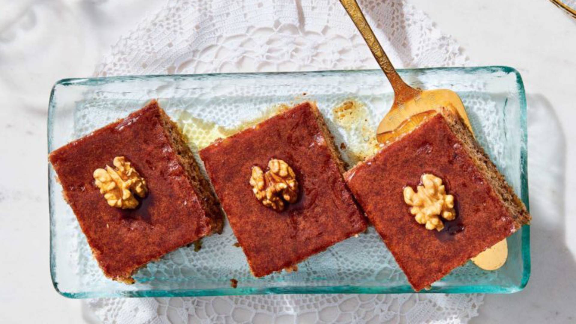 - Βγάζουμε την καρυδόπιτα από τον φούρνο και την αφήνουμε να κρυώσει εντελώς μέσα στο ταψί, για 1 ώρα περίπου.