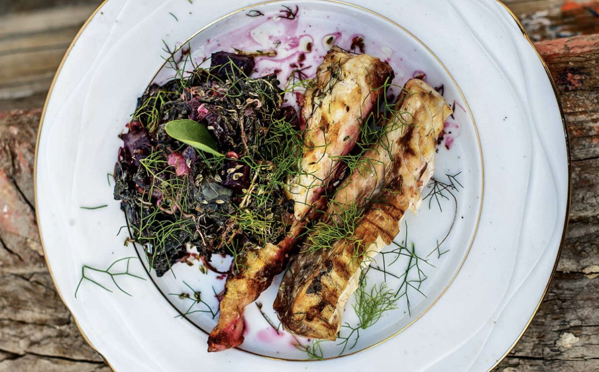 - Μοιράζουμε τα τσιγαριαστά βλίτα σε πιάτα και από πάνω τακτοποιούμε τα φιλέτα ξιφία και τα κυβάκια παντζαριού.
