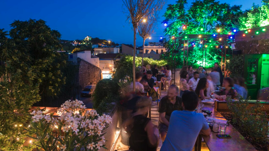 Κοκτέιλ και πίτσα που φτιάχνεται σε ένα φουρνάκι δίπλα στο μπαρ, κόσμος καθισμένος σε πάγκους, σεζλόνγκ και σκαλάκια σε μια ταράτσα σαν καλοκαιρινή καρτ ποστάλ, η οποία σου δίνει την αίσθηση μιας αυλής παλιού αθηναϊκού σπιτιού που σκαρφάλωσε στα ψηλά. Ακρόπολη, Αστεροσκοπείο και τα κόκκινα φουγάρα του Γκαζιου΄ απέναντι –ανάλογα με το που κάθεσαι έχεις μπροστά σου άλλο αθηναϊκό τοπόσημο–, ελιές, ροδιές, άγριες τριανταφυλλιές, ρυγχόσπερμα, δεντρολίβανα και λεβάντες τριγύρω. Μου αρέσει το rooftop του μπουτίκ ξενοδοχείου του Ψυρρή, έχει μια ωραία ανεμελιά. Α.Σ.