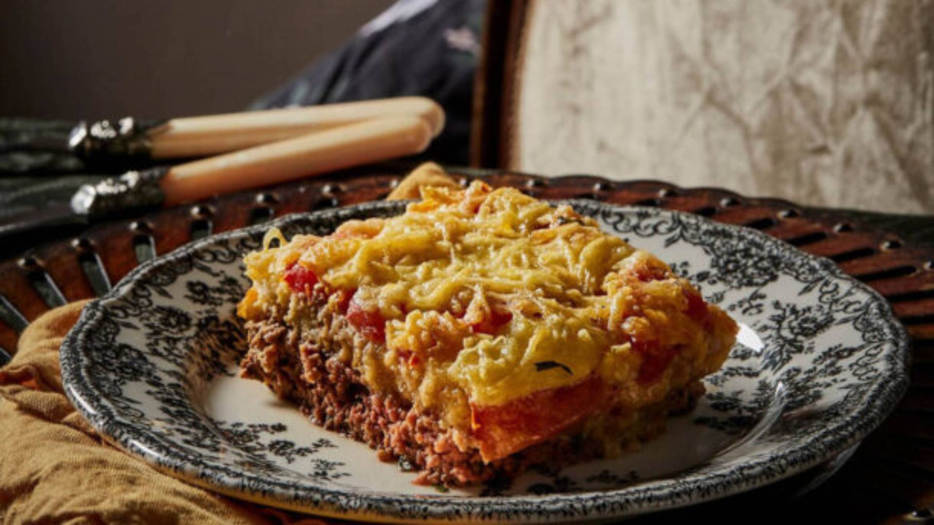 - Περιχύνουμε με τα χτυπημένα αυγά και ψήνουμε σε προθερμασμένο φούρνο στους 180°C για περίπου 50 λεπτά ή μέχρι να γίνει ο κιμάς, να λιώσει το κασέρι και να ψηθούν τα αυγά.