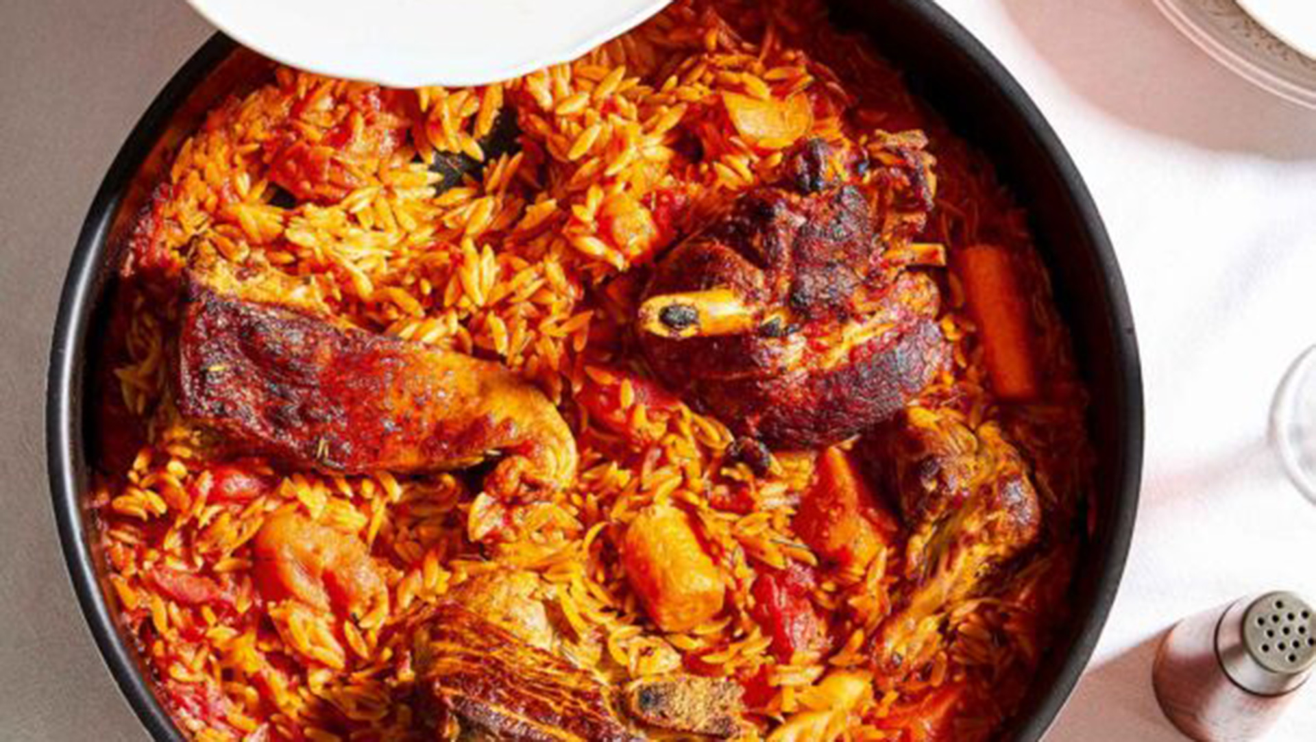 - Όταν το κρέας είναι έτοιμο, ξεφουρνίζουμε, ξεσκεπάζουμε το σκεύος και ρίχνουμε το κριθαράκι ανάμεσα στα κομμάτια του κρέατος. Το πιθανότερο, σύμφωνα με τις αναλογίες της συνταγής, είναι να μη χρειαστούν επιπλέον υγρά, αλλά αν δούμε ότι το κριθαράκι δεν καλύπτεται πλήρως από τη σάλτσα, προσθέτουμε το ανάλογο καυτό νερό και αλατοπίπερο.