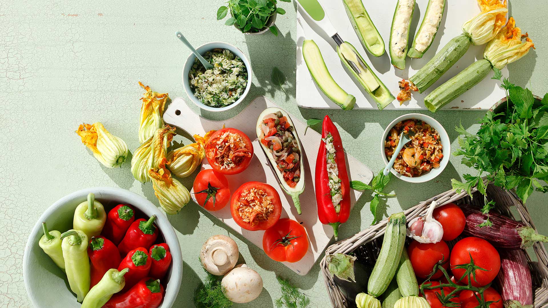 Και όμως, τα καλοκαιρινά γεμιστά είναι ένα από τα εμβληματικότερα πιάτα της ελληνικής κουζίνας. Το να ενσωματώσουμε τις ντομάτες και τις πιπεριές στο καθημερινό μας διαιτολόγιο δεν ήταν δύσκολο. Επιπροσθέτως, το γέμισμα ήταν ανέκαθεν γνωστή μαγειρική πρακτική στην Ελλάδα, με σχετικά γηγενή υλικά, όπως τα κληματόφυλλα, τα λαχανόφυλλα, τα σέσκουλα, οι μελιτζάνες και τα κρεμμύδια. Μέχρι να διαδοθεί η καλλιέργεια των ποικιλιών του ρυζιού, η τυπική γέμιση ήταν πλιγούρι και τραχανάς, συχνά και πολύ ψιλοκομμένο κρέας.
