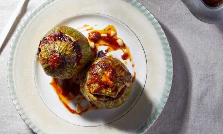 - Γεμίζουμε μέχρι πάνω τα κολοκύθια με το μείγμα και σκεπάζουμε με τα «καπάκια» τους.