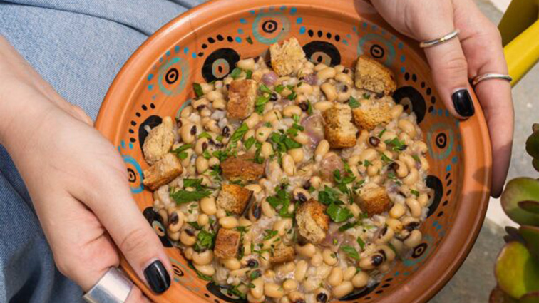 «Τα καφεμάτικα Μυκόνου καλλιεργούνται συνήθως άνυδρα, έχουν καφέ μάτι, είναι μικρόσπερμα και βραστερά. Μέχρι πριν από τέσσερις δεκαετίες υπήρχε μεγάλη παραγωγή στο νησί και ταξίδευαν σε μεγάλες ποσότητες στα γύρω νησιά και στην περιοχή της πρωτεύουσας -Αθήνα και Πειραιά- επειδή είχαν καλή φήμη σαν καλόβραστα και με νόστιμο σώμα. Η τηγάνιση είναι μια προσθήκη στα συχνά νερόβραστα «φασουλάκια» που εκμεταλλεύεται τη νοστιμιά του τσιγαρισμένου κρεμμυδιού και αποκτά ιδιαίτερο και χορταστικό ενδιαφέρον με την προσθήκη του ρυζιού και του φρυγανισμένου ψωμιού», λέει ο Δημήτρης Ρουσουνέλος, που ανέλαβε να τα φτιάξει.