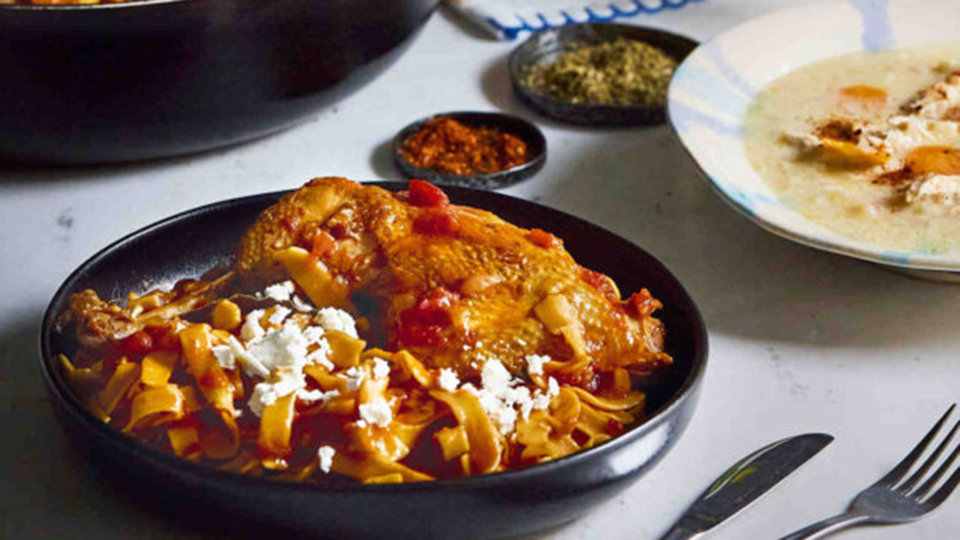 Το κυριακάτικο τραπέζι μας αξίζει μια παραπάνω φροντίδα, οπότε φτιάχνουμε κόκορα με χυλοπίτες. Με τη ντοματένια σάλτσα του, μπόλικα κρεμμύδια, μυρωδάτο δυόσμο και τριμμένη μυζήθρα. Δίπλα του βάζουμε μια πλούσια χωριάτικη σαλάτα, μια γιαουρτένια, δροσερή σάλτσα με δυόσμο και ζεστό προζυμένιο ψωμί.