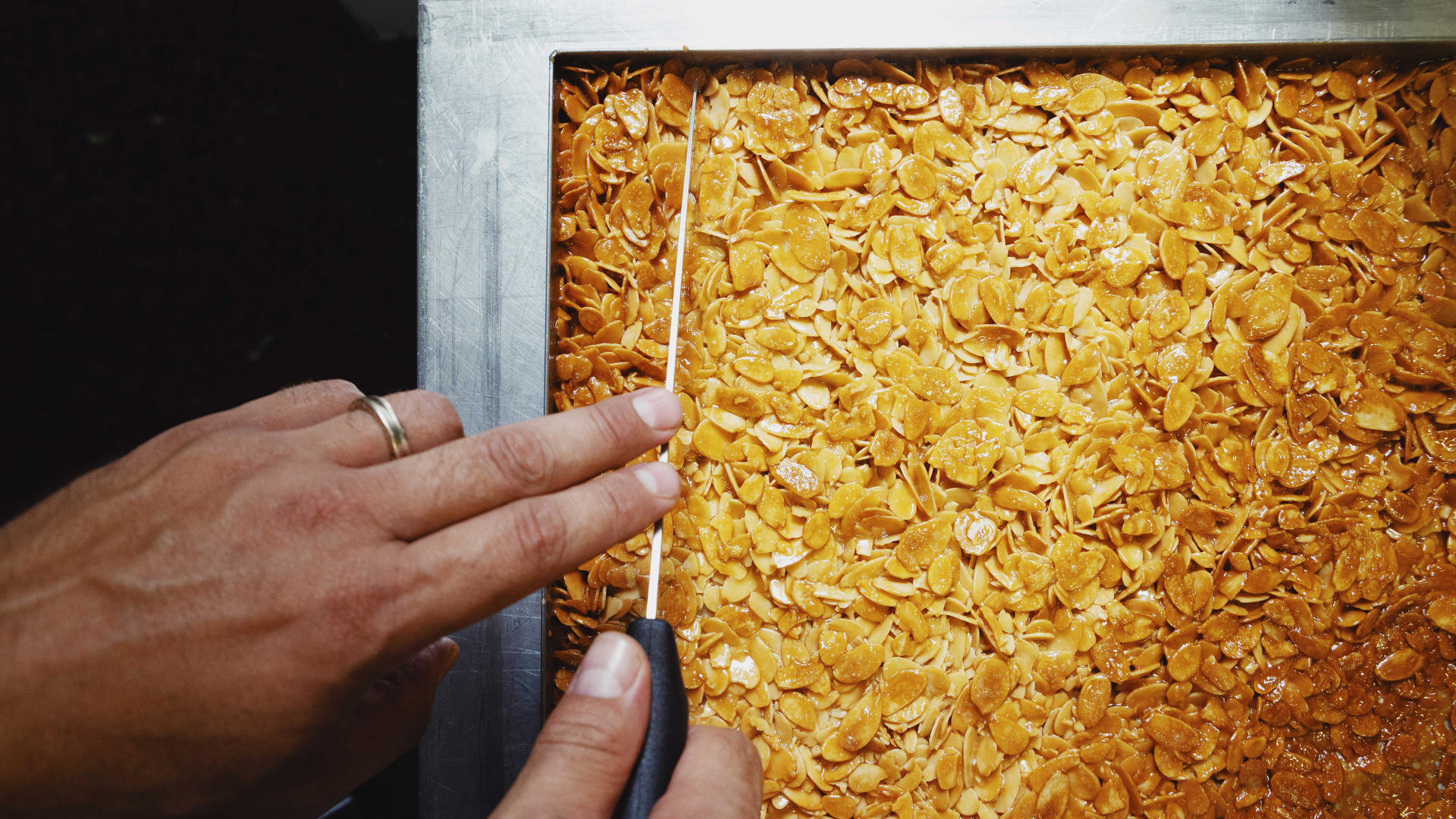 Αγαπημένος προορισμός για το ντελικάτο κέρασμα είναι οι Αφοί Ασημακόπουλοι (Χαρ. Τρικούπη 82, Εξάρχεια, Τ/210-36.10.092), που γενικά είναι τοπ στα αμυγδαλένια γλυκά (βλ. και πάστα αμυγδάλου). Για την παρασκευή του χρησιμοποιούν ελληνικά αμύγδαλα, κυρίως από τον Βόλο, τα οποία σπάνε οι ίδιοι σε κομμάτια στο εργαστήριό τους. Η συνταγή που ακολουθούν είναι αρκετά κλασική και περιλαμβάνει τη δημιουργία μιας καραμέλας εμπλουτισμένης με μέλι και βούτυρο. Αφού ανακατέψουν την τελευταία με τον ξηρό καρπό, απλώνουν καλά το μείγμα σε ένα ταψί, το φουρνίζουν και έπειτα το κόβουν γρήγορα σε τριγωνικά κομμάτια, προτού κοκαλώσει. Αν και η εκδοχή που προτιμώ είναι εκείνη που έχει μόνο αμύγδαλο, δεν λέω όχι και στις φλωρεντίνες που βουτάνε σε ποιοτική μπίτερ σοκολάτα. Έχουν και μια τρίτη, διαφορετική εκδοχή, με φουντούκι και σοκολάτα γάλακτος.