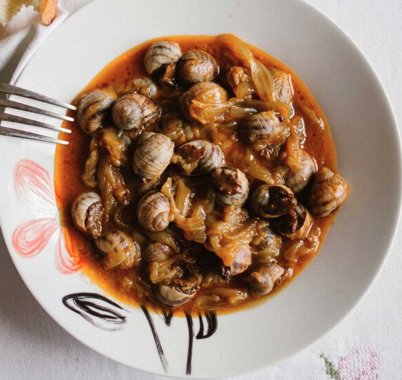 «Με τα πρωτοβρόχια βγαίνουμε το πρωί, τα χαράματα, και πάμε σε χέρσα χωράφια ή σε αμπέλια και μαζεύουμε σαλιγκάρια. Είναι μικρά αυτά τα σαλιγκάρια, όχι μεγάλα όπως της Κρήτης. Έπειτα, τα φέρνουμε σπίτι και τα κλείνουμε σε μια λεκάνη για ένα βράδυ, για να βγει το χώμα τους. Την επόμενη μέρα ρίχνουμε στη λεκάνη σιμιγδάλι – παλιά βάζα- με πίτουρα–, για να το φάνε τα σαλιγκάρια και να καθαρίσουν, τα αφήνουμε για μία ημέρα ακόμη και την επομένη τα πλένουμε καλά και τα νεροβράζουμε», λέει η Άννα Παππά-Πάνου, οικιακή μαγείρισσα από την Κήρινθο της Βόρειας Εύβοιας, η οποία μας έδωσε τη συνταγή. Καθώς με τις πρώτες βροχές τα σαλιγκάρια είναι άφθονα, μας λέει πως διατηρεί κάμποσα και στην κατάψυξη, ώστε να μπορεί να φτιάχνει το φαγητό αυτό και τον χειμώνα. Εμείς μπορούμε να αγοράσουμε έτοιμα, καθαρισμένα σαλιγκάρια, συνήθως από μπακάλικα με κρητικά προϊόντα.