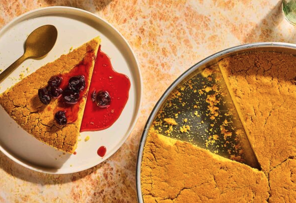 - Μόλις βγει το γλυκό ζεστό από τον φούρνο, το περιχύνουμε (κατά βούληση) με σιρόπι βυσσινάδας (αδιάλυτο) ή με οποιοδήποτε γλυκό του κουταλιού της αρεσκείας μας (ταιριάζει ιδιαίτερα το ψιλοκομμένο γλυκό λεμόνι, πορτοκάλι, νεράντζι ή περγαμόντο με μπόλικο σιρόπι. Είναι ιδανικό γλυκό για να συνοδεύσετε τον καφέ σας.