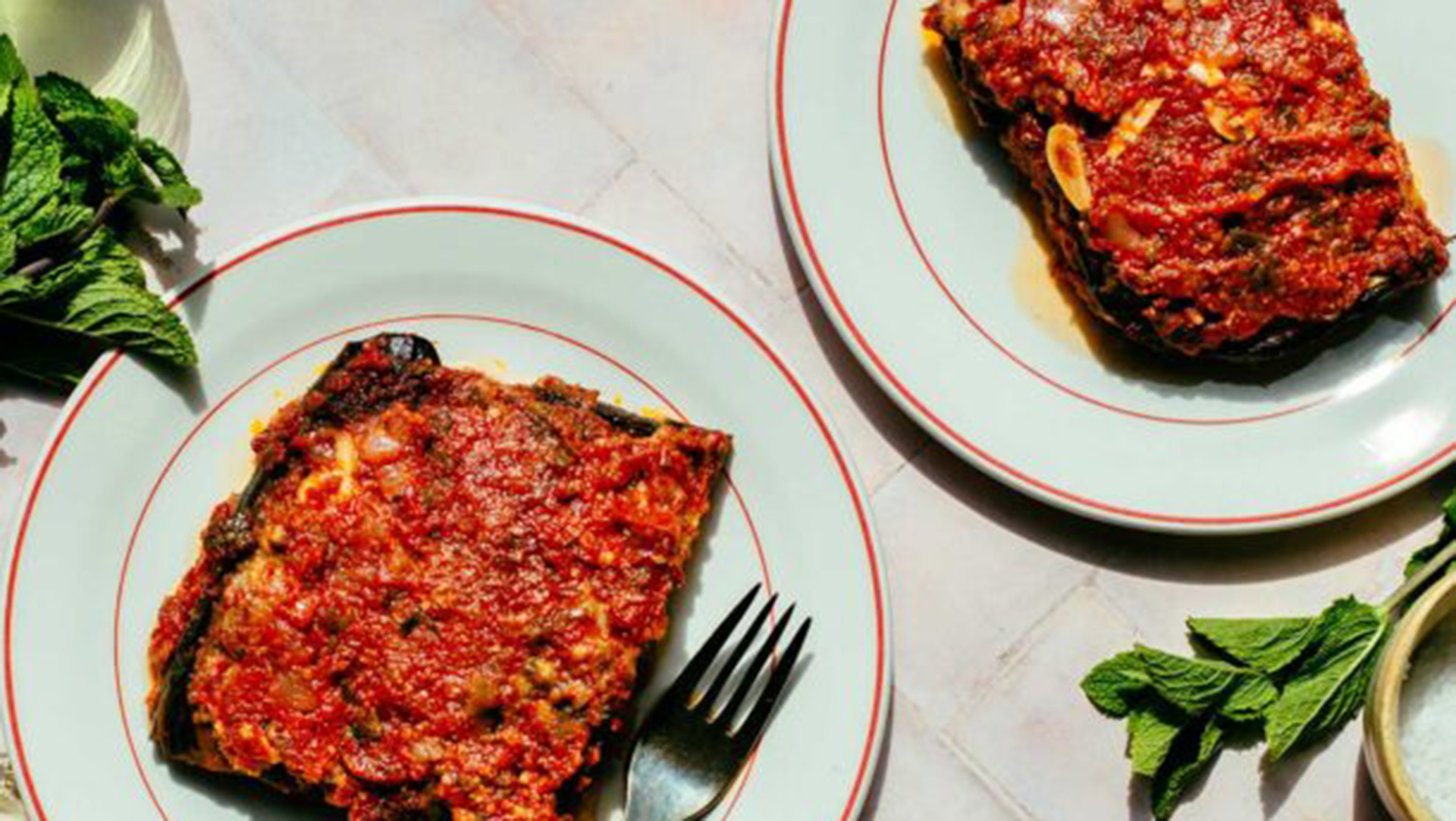 - Επαναλαμβάνουμε τη διαδικασία βάζοντας μία στρώση σάλτσα, τυρί, μελιτζάνα, δυόσμο και κοτόπουλο άλλες δύο φορές.