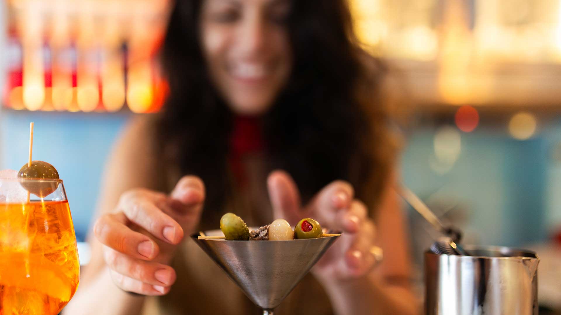 Σε αυτά τα χαμηλών αλκοολικών βαθμών, πικρόγλυκα, μπουρμπουληθρέ και μη, ποτά εστιάζει ο κατάλογος. Η ραχοκοκαλιά του είναι τέσσερα καλοφτιαγμένα spritz με βάση τα πιο δημοφιλή ιταλικά «πικρά»: Aperol, Campari, Averna και Cynar (εκείνο με την αγκινάρα). Ετοιμάζουν επίσης τα πιο κλασικά aperitivo cocktail, από Negroni και Americano μέχρι Garibaldi και ένα ωραιότατο Sbagliato (Campari, βερμούτ και προσέκο). Οι φαν του (πολύ) dirty Martini θα ευχαριστηθούν τη signature εκδοχή του μαγαζιού με ελιά, αντζούγια, αγγουράκι πίκλα και κάππαρη, που είναι ποτό και σνακ μαζί. Όσο για το κρασί, υπάρχουν έξι-επτά ενδιαφέρουσες ετικέτες από τον ελληνικό αμπελώνα οι οποίες θα ανανεώνονται που και που.