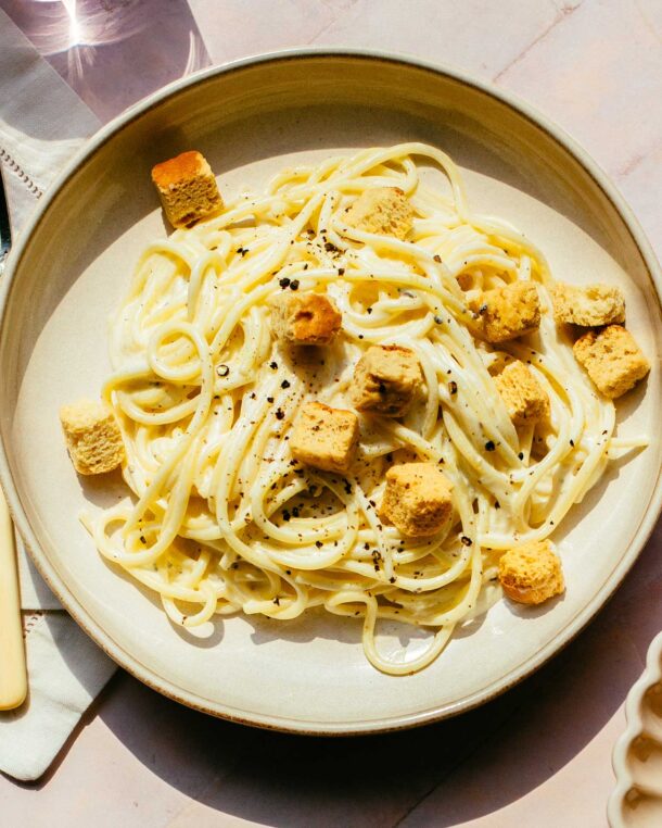 Με λιγοστά ταπεινά υλικά ετοιμάζουμε μια λαχταριστή μακαρονάδα χωρίς να μας φάει η ζέστη στην κουζίνα. Πρόβειο γιαούρτι, σκόρδο και μπαγιάτικο ψωμί συνθέτουν μία από τις νοστιμότερες σάλτσες γα τα μακαρόνια μας.