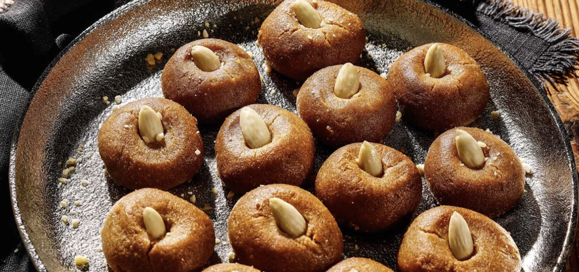 - Μπήγουμε από ένα ασπρισμένο αμύγδαλο στο κέντρο κάθε ζύμης και φουρνίζουμε.