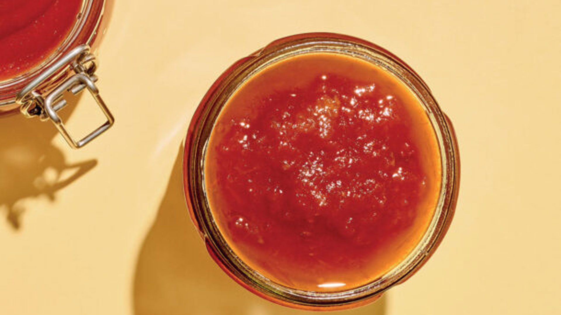 Στον φούρνο Kora Bakery, απ’ όπου πήραμε αυτή τη συνταγή, οι σάλτσες, οι μαρμελάδες και τα αλείμματα βρίσκουν τη θέση τους πλάι στα μυρωδάτα αρτοσκευάσματα που ετοιμάζει η Ιάνθη Μιχαλάκη. Μόνο και μόνο για τα αρώματα των μπαχαρικών που συνδυάζονται τόσο όμορφα με την ντομάτα, αξίζει να δοκιμάσετε αυτή τη μαρμελάδα, που περισσότερο μοιάζει με γλυκόξινο τσάτνεϊ και θα συνοδεύει τέλεια τις πιατέλες σας με λευκά ή κίτρινα τυριά. Μπορούμε, όμως, να την απλώσουμε και ως επικάλυψη σε ένα αλμυρό τσίζκεϊκ λευκών τυριών και να τη σερβίρουμε ως ντιπ για ποικιλία από μπαστουνάκια λαχανικών ή κριτσίνια με τυρί, πολύσπορα και ολικής άλεσης.