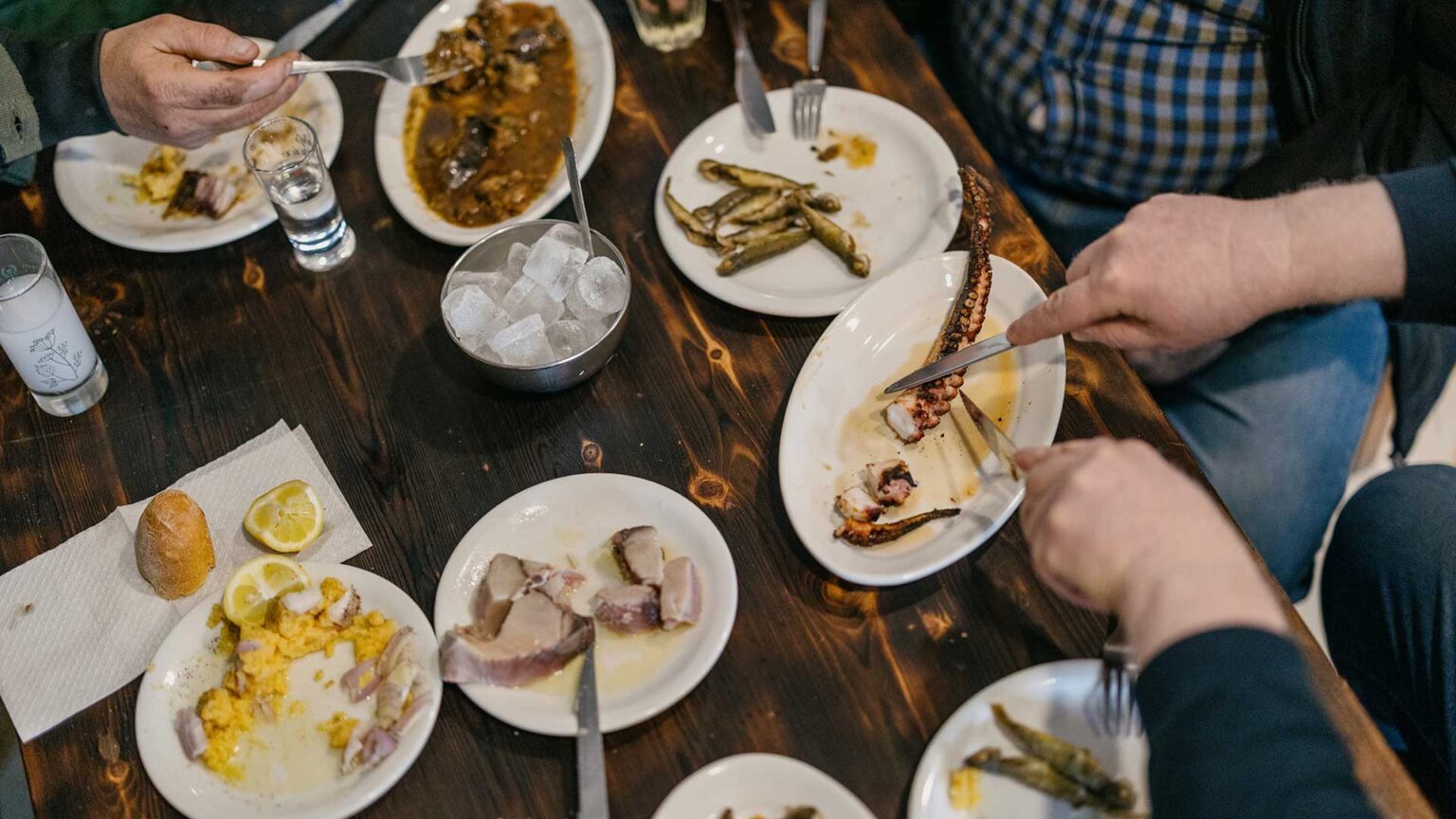 Στη μέση του τραπεζιού μπαίνουν απ’ όλα, από τα κλασικά μέχρι τα πιο ιδιαίτερα: κεφτέδες και μπιφτεκάκια, παστά και τηγανητά ψαράκια, λιαστό χταπόδι, καβούρια, σουπιές με μελιτζάνες, πικάντικα σουτζούκια και πεντανόστιμες παστουρμαδόπιτες.