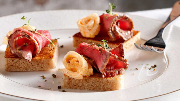 - Σε κάθε τηγανισμένο ψωμάκι βάζουμε από ένα ρολάκι ομελέτα και ένα ρολάκι φιλέτο.
