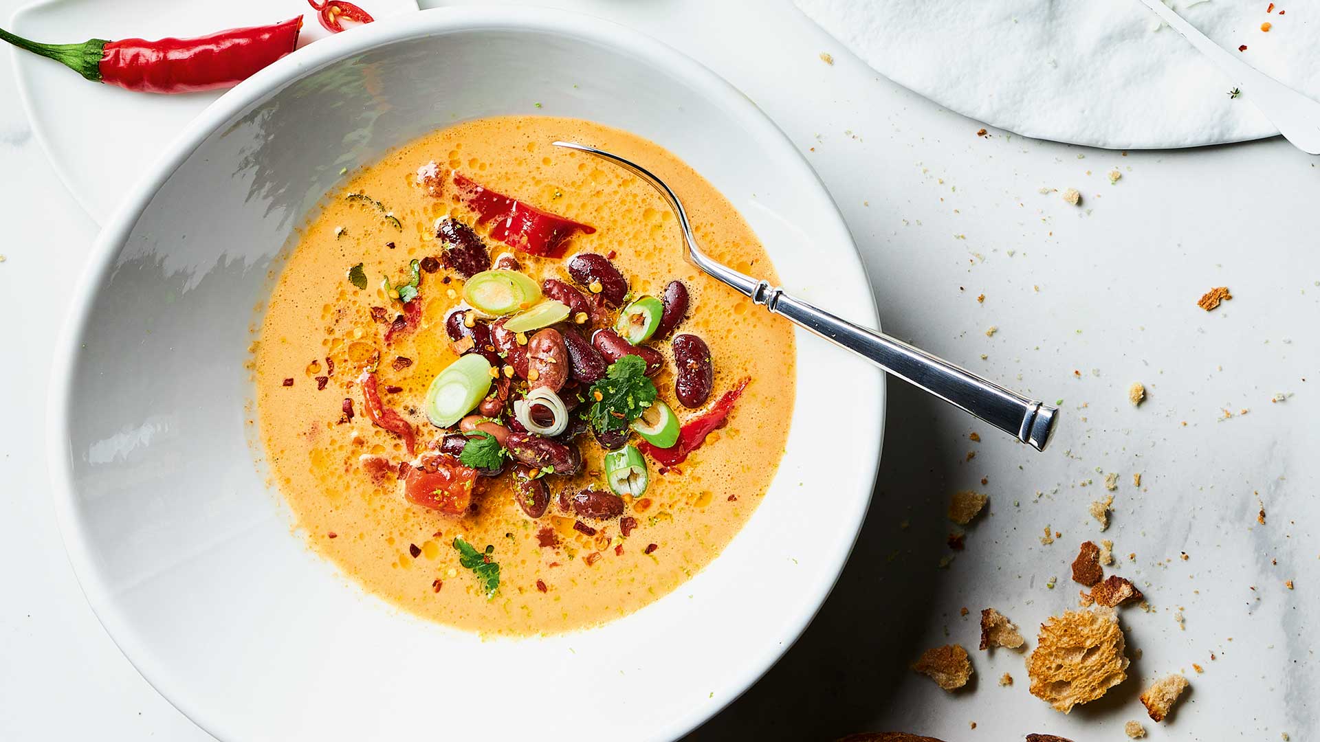 Ταϊλανδέζικη φασολάδα καυτερή, με γάλα καρύδας, λάιμ και κόκκινο κάρι