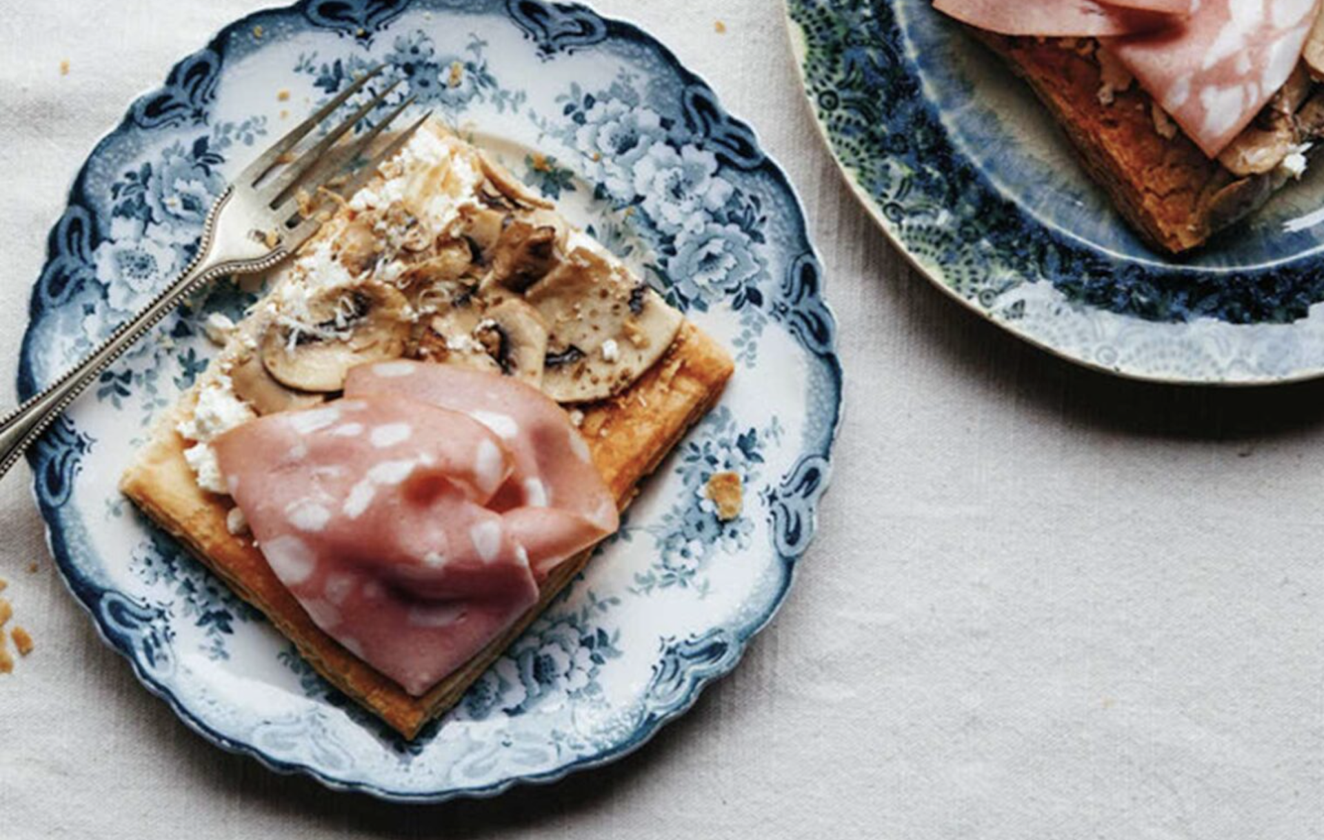 Με έτοιμη σφολιάτα, σοταρισμένα μανιτάρια, τυριά και μορταδέλα, φτιάχνουμε ένα εύκολο και γευστικό ορεκτικό. Εναλλακτικά σερβίρουμε ως ελαφρύ γεύμα μαζί με μια ωραία σαλάτα.
