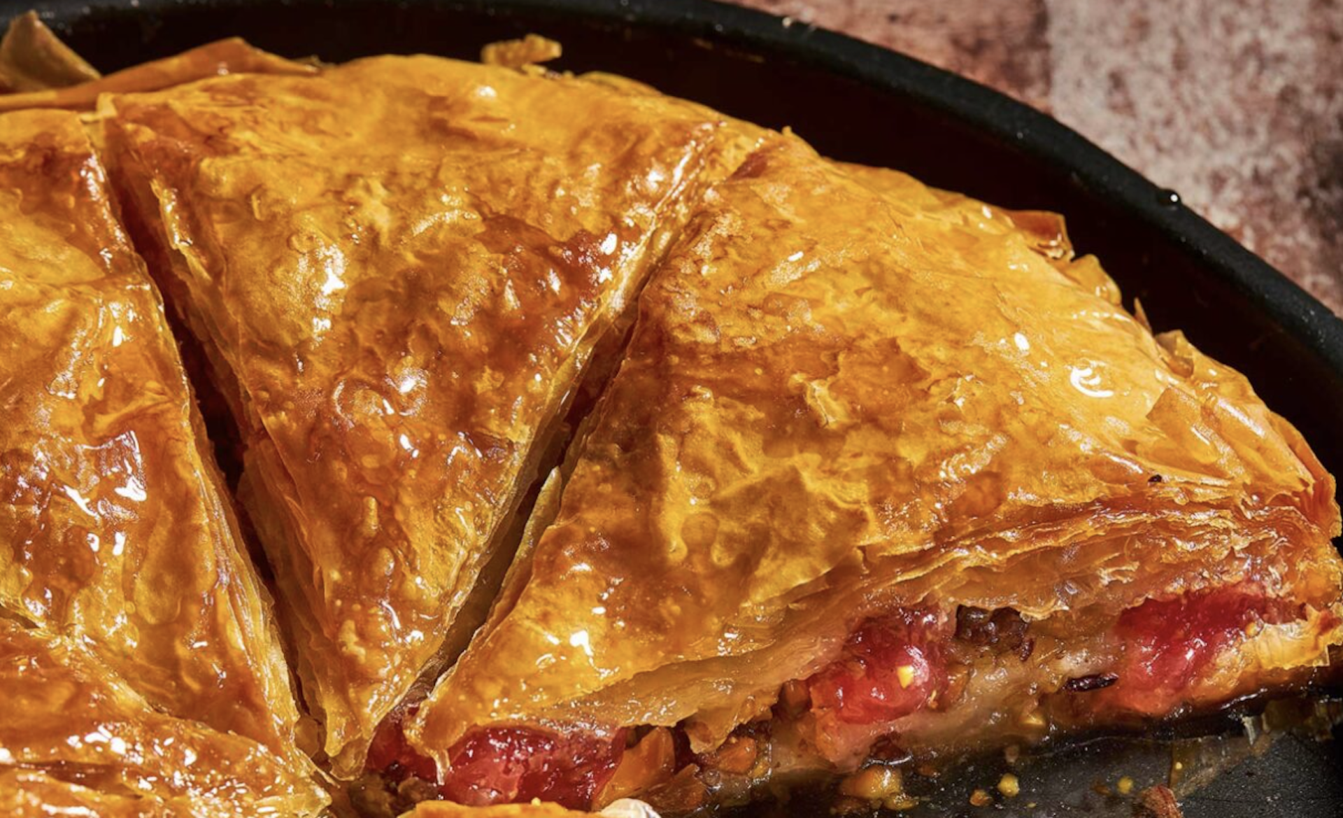 Ένας εύκολος μπακλαβάς με φυστίκια, τριανταφυλλένια λουκούμια και συνδυασμό βουτύρων που κάνει το άρωμά του ακόμα πιο συναρπαστικό.