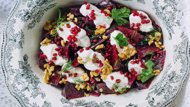 - Για τη σαλάτα με ψητά παντζάρια, ζαγορίσιο γαλοτύρι, ρόδι και καρύδι, ξεκινάμε προθερμαίνοντας τον φούρνο στους 160°C.