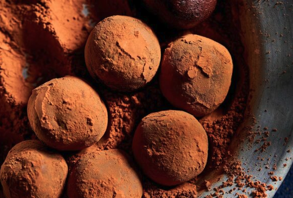 - Παίρνουμε κουταλιές από το μείγμα και πλάθουμε τρουφάκια. Τα αφήνουμε πάνω σε αντικολλητικό χαρτί και, αφού τα πλάσουμε όλα, τα κυλάμε μέσα σε κακάο, έτσι ώστε να καλυφθούν καλά. Τα τινάζουμε ελαφρώς και τα σερβίρουμε σε πιατέλα ή φοντανιέρα. Διατηρούνται στο ψυγείο.