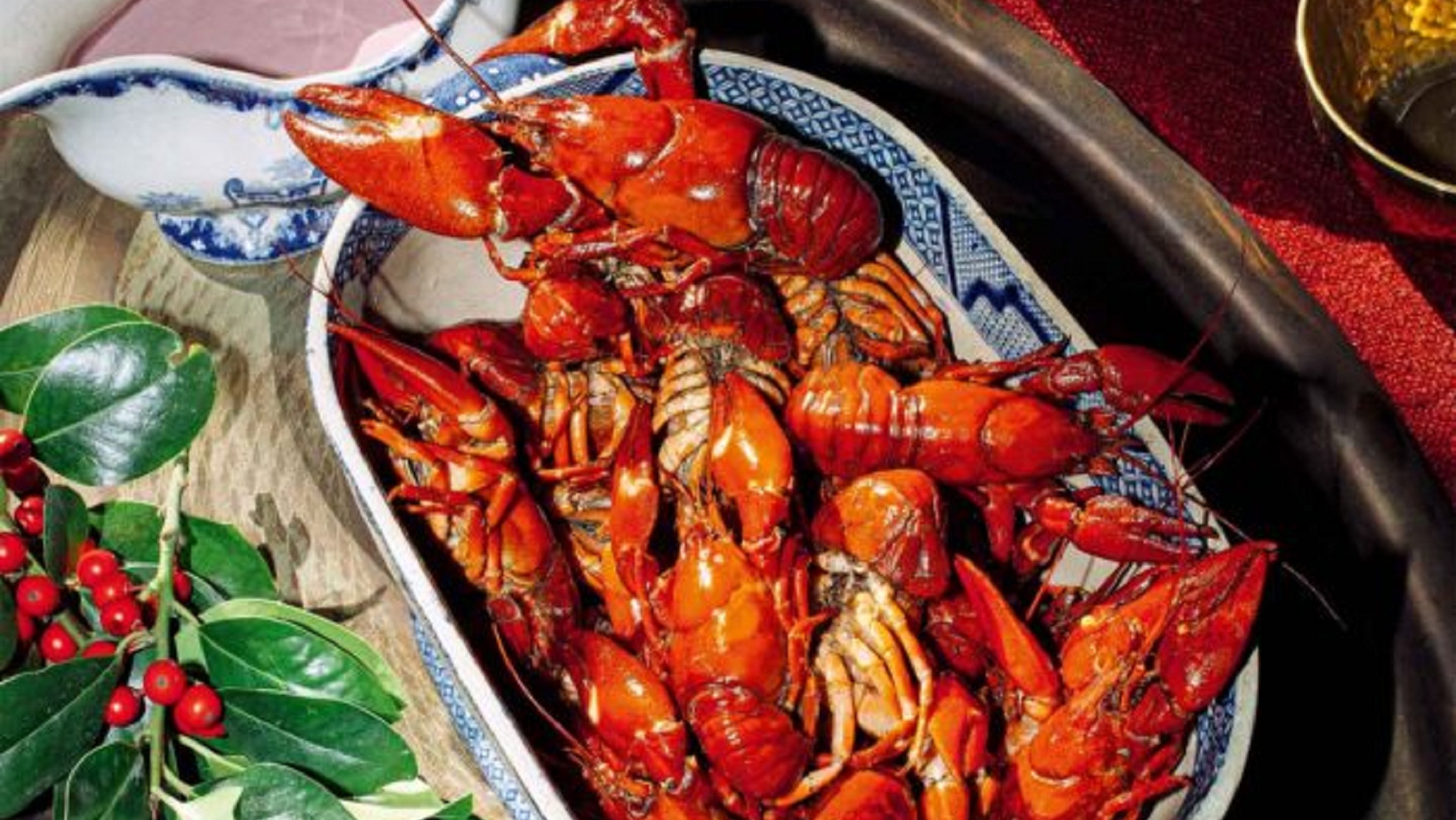 Εδώ οι σεφ φτιάχνουν μια συνοδευτική ζεστή βουτυρόσαλτσα με μούρα η οποία έχει ιδιαίτερο ενδιαφέρον, καθώς η τεχνική της μοιάζει με της ολλαντέζ, φτιάχνεται με καμένο βούτυρο και η προσθήκη των μούρων την εξισορροπεί με ωραία, φρουτένια οξύτητα. Τι θα κάνουμε όμως εμείς στο σπίτι στην πόλη, που δεν έχουμε πρόσβαση σε ποτάμια; Θα χρησιμοποιήσουμε θαλασσινές καραβίδες, με πολύ νόστιμο αλλά διαφορετικό αποτέλεσμα.