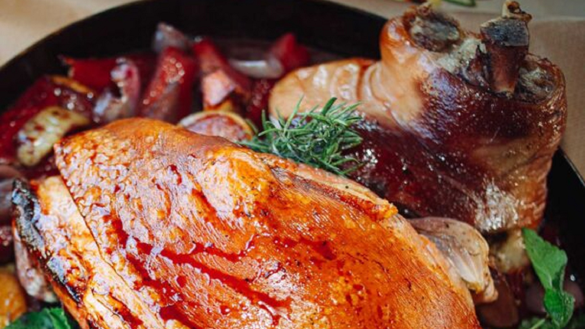 2 κότσια με το δέρμα τους, βάρους 1.000- 1.200 γρ. το καθένα (ζητάμε από τον κρεοπώλη να ξυρίσει καλά το δέρμα για να απομακρυνθούν τυχόν τρίχες)