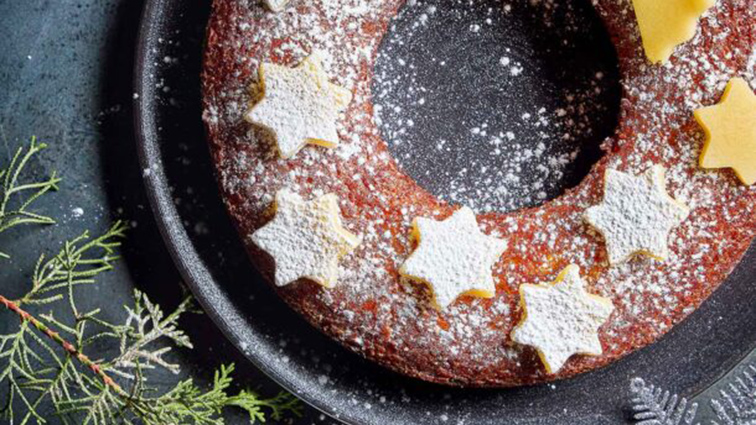 - Αφήνουμε να κρυώσει, ξεφορμάρουμε και σερβίρουμε με άχνη ζάχαρη και, αν θέλουμε, με αστεράκια από μάρτσιπαν που κόβουμε με κουπάτ.
