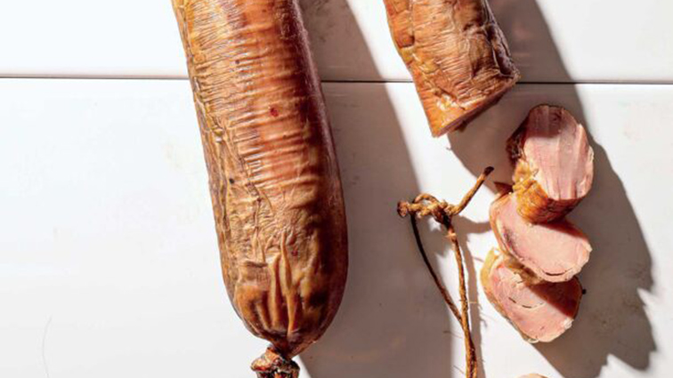 - Στη συνέχεια την κρεμάμε σε δροσερό μέρος, π.χ. στερεώνουμε έναν γάντζο στο κάτω μέρος των επιτοίχιων ντουλαπιών της κουζίνας και την κρεμάμε εκεί χωρίς να ακουμπάει σε τοίχο, ώστε να αερίζεται από όλες τις πλευρές, για 40 ημέρες μέχρι να ωριμάσει.