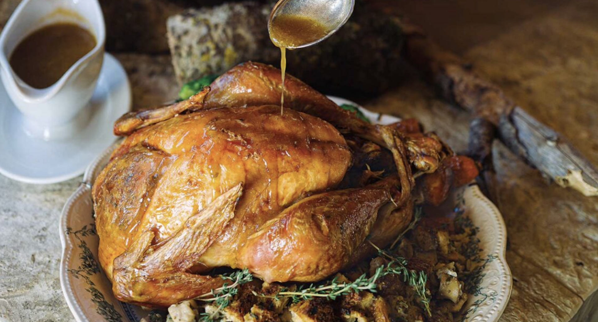 - Κόβουμε τη γαλοπούλα σε μερίδες (τα πιο χοντρά ψαχνά σε φέτες) και σερβίρουμε συνοδεύοντας με τη γέμισή της και την «πουτίγκα». Τη σάλτσα τη σερβίρουμε σε ξεχωριστό μπολ.