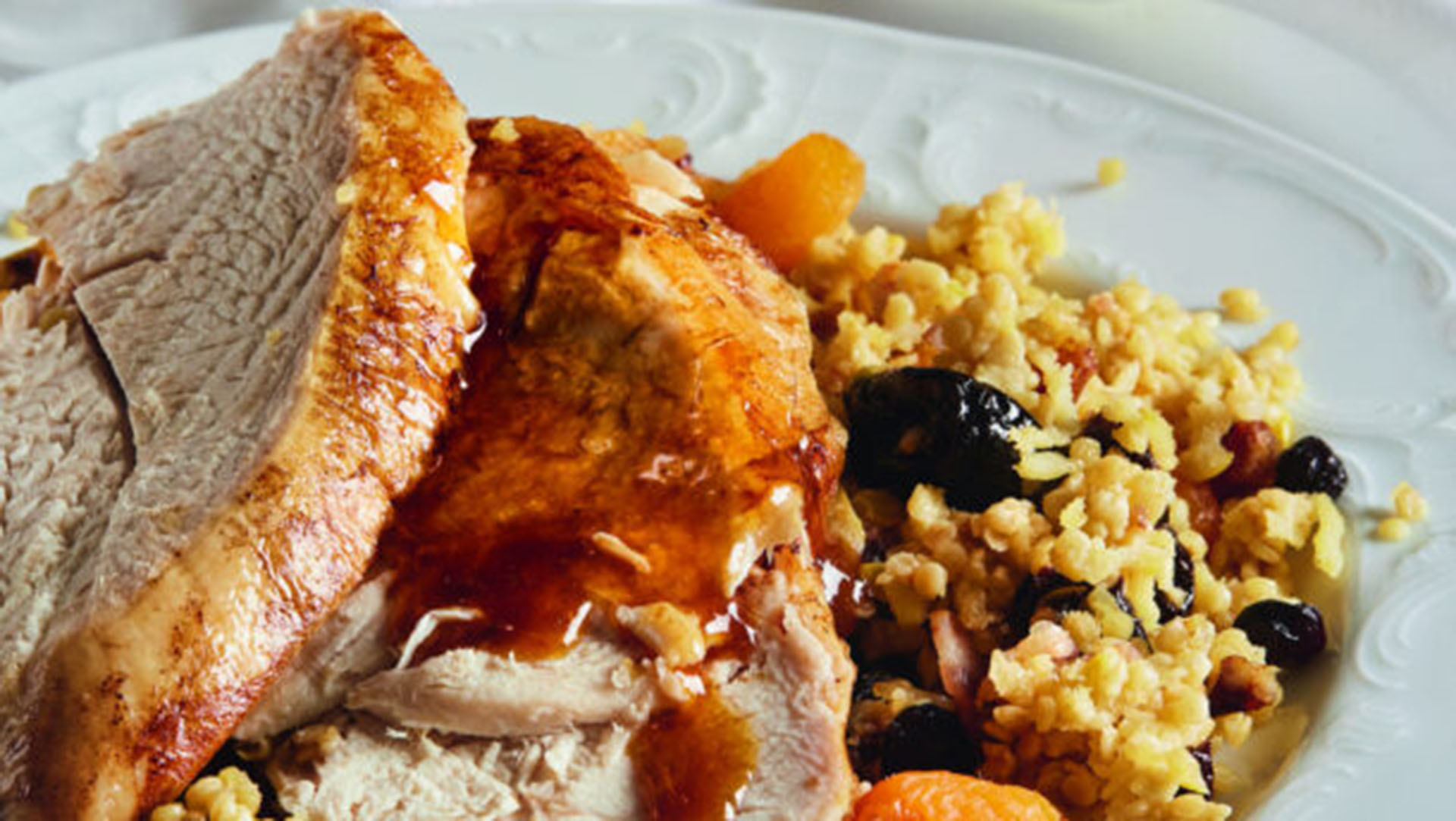 - Σερβίρουμε την όρνιθα γεμιστή με ξερά φρούτα, κυδώνι και τραχανά με ένα αφράτο ρύζι.