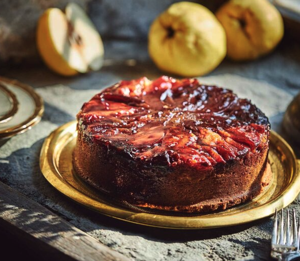 Έχει ωραία, μαλακή, σχεδόν κρεμώδη υφή (το οφείλει στο ότι το βούτυρο προστίθεται στο μείγμα στο τέλος, λιωμένο, και δεν το χτυπάμε με μίξερ) και, αν μας ρωτάτε, είναι ανώτερη από την κλασική ανάποδη μηλόπιτα και πιο επίσημη. Θα την κεράσετε όχι μόνο με τον καφέ αλλά και σε πιο γιορτινές περιστάσεις, συνοδεύοντάς τη με έναν γλυκό επιδόρπιο οίνο, για να ταιριάξει με τη Μαυροδάφνη της συνταγής, και λίγο γιαούρτι στο πλάι αντί για σαντιγί.