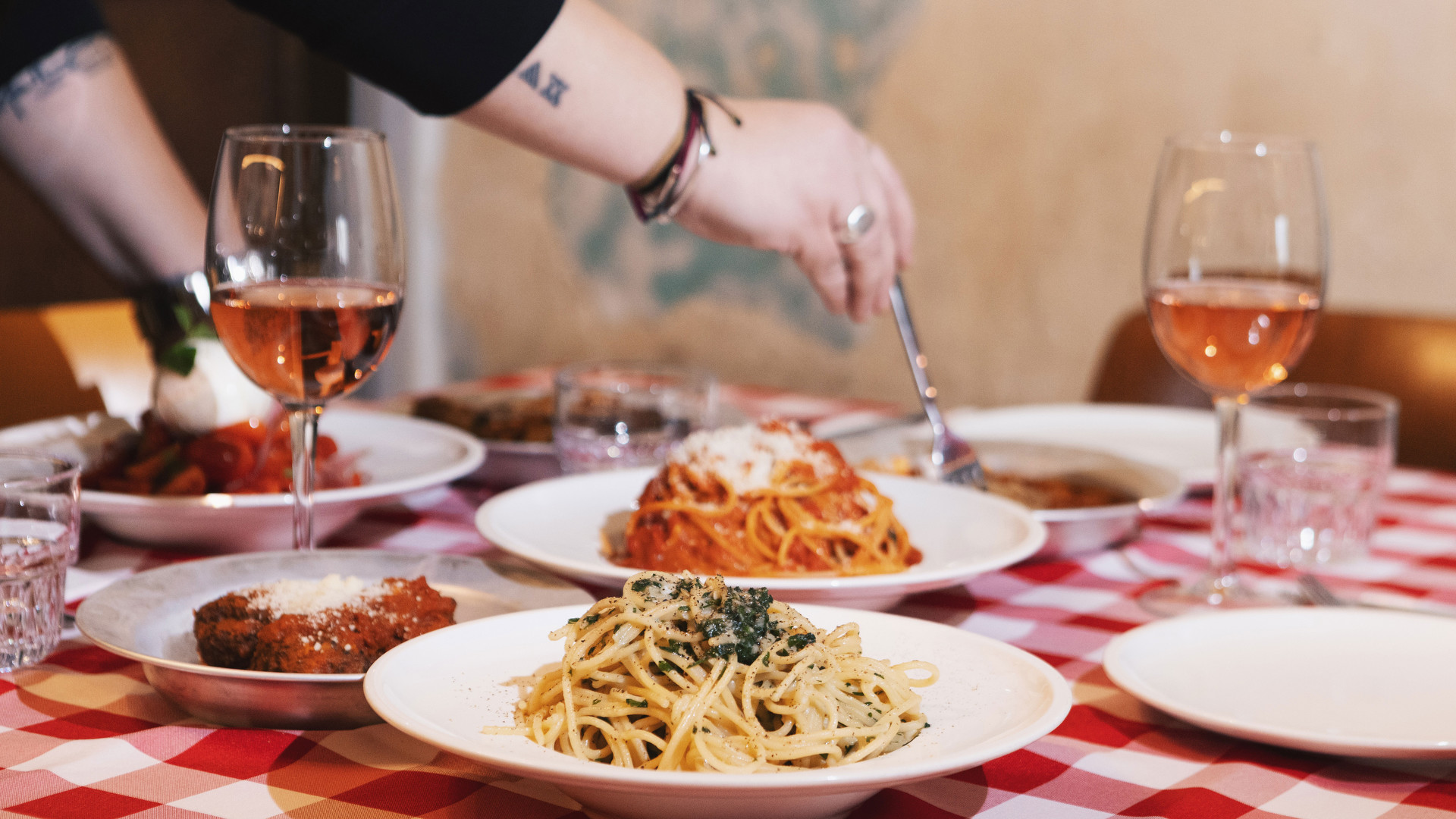 Προσωπικό αγαπημένο, το πάναπλο (γι΄ αυτό και δύσκολο) σπαγγέτι pomodoro, με γενναιόδωρες ποσότητες από σπιρτόζικη κόκκινη σάλτσα που φτιάχνεται αποκλειστικά με ντοματίνια San Marzano (περισσεύει και για βούτες με ψωμί). Ωραία και τα paccheri με πέστο από φυστίκι Αιγίνης, μπουράτα, χοντροκομμένο καβουρδισμένο φυστίκι και μπόλικο ξύσμα λεμονιού. Η μακαρονάδα alla gricia, η λιγότερο διάσημη «ξαδέρφη» της καρμπονάρα, φτιάχνεται με γκουαντσιάλε, πεκορίνο και φρεσκοτριμμένο πιπέρι (θα την ήθελα λίγο πιο δεμένη), ενώ τα σπαγγέτι aglio e olio, που δεν τσιγκουνεύονται το χρυσοτηγανισμένο σκορδάκι, μπορείτε, αν θέλετε, να τα ζητήσετε και καυτερά. Για συνοδεία μπορείτε να διαλέξετε κάτι από τον μικρό κατάλογο με «εύκολα» ιταλικά κρασιά και στο τέλος, αν μείνει λίγος χώρος, αξίζει να μοιραστείτε το καλοφτιαγμένο τιραμισού.