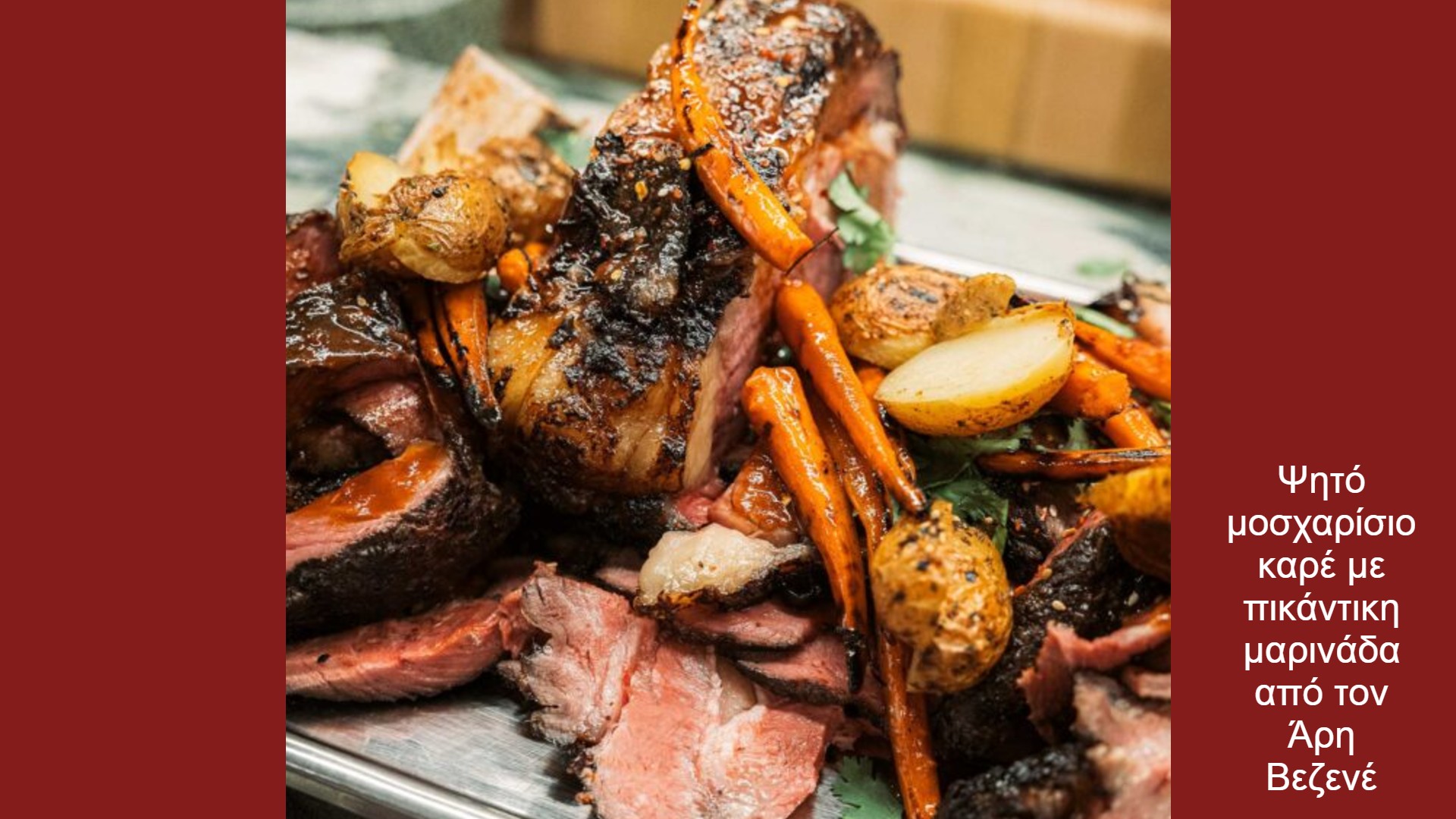 Οσο ψήνεται το κρέας, φτιάχνουμε τα καρότα γλασέ, τις ψητές πατάτες με φύλλα nori και τη χειροποίητη σάλτσα μπάρμπεκιου, που το μόνο που θέλει είναι ένα ανακάτεμα. Όταν όλα είναι έτοιμα, κόβουμε το ψαχνό, που το έχουμε ενδιαμέσως αφήσει να ξεκουραστεί, σε tagliata, δηλαδή σε λεπτές φέτες κάθετα προς τις ίνες, και το σερβίρουμε σε πιατέλα, μαζί με τα συνοδευτικά του.