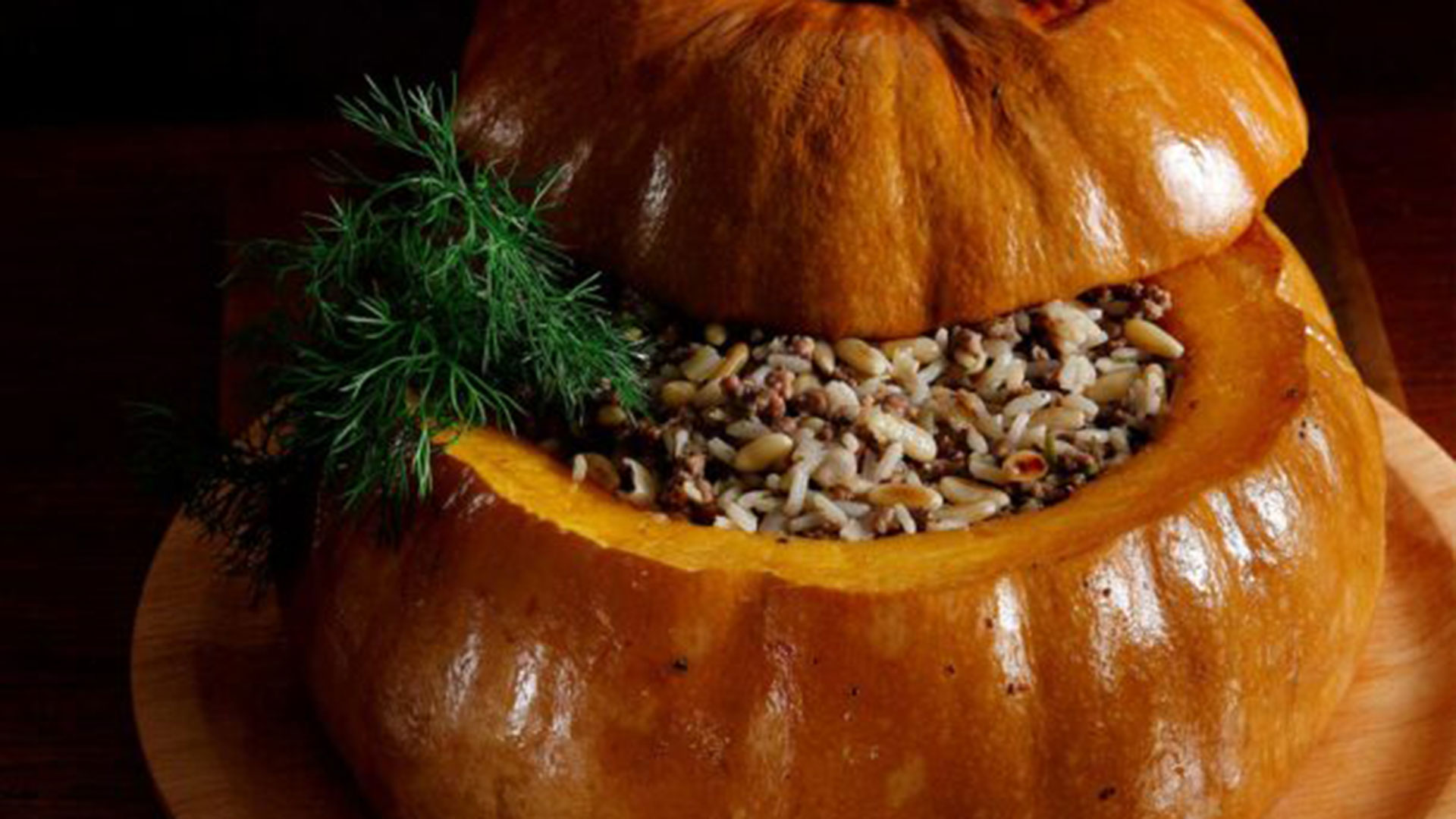 Μια συμβουλή για ευκολότερο άδειασμα είναι να χρησιμοποιήσετε ένα μαχαίρι και ένα γερό κουτάλι. Όσο για τη γέμιση, μπορείτε να πειραματιστείτε με ένα σωρό υλικά, από πιο κλασικούς συνδυασμούς, όπως ρύζι και κιμά, μέχρι συκωτάκια, λουκάνικα ή κάποιο ωραίο κατσικίσιο τυρί ή φέτα και μυρωδικά. Ανάμεσα στις συνταγές που ακολουθούν θα βρείτε κολοκύθα γεμιστή από την Αργεντινή, με μοσχαρίσιο κιμά, ρύζι, σταφίδες, κουκουνάρια και μπέικον, κολοκύθα γεμιστή με συκωτάκια κοτόπουλου, μήλα και κάστανα, όπως και μια κολοκύθα με ψαχνά κοτόπουλου, κάστανα, ρύζι και μανιτάρια. Για μια χορτοφαγική παραλλαγή μπορείτε να αντικαταστήσετε το κρέας με ρεβύθια ή με ξηρούς καρπούς και μπόλικα μπαχαρικά, όπως καπνιστή πάπρικα ή μείγμα κάρι. Όταν η γεμιστή κολοκύθα θα φτάσει στο τραπέζι να είστε σίγουροι ότι θα προκαλέσει μικρά επιφωνήματα ενθουσιασμού. Το καπάκι της ανοίγει και οι εκπλήξεις δεν τελειώνουν! Το ιδανικό σερβίρισμα θέλει την κολοκύθα χλιαρή, και με κάθε κουταλιά, εκτός από την μυρωδάτη γέμιση, να παίρνουμε και λίγο από την καλοψημένη πορτοκαλί ψίχα.